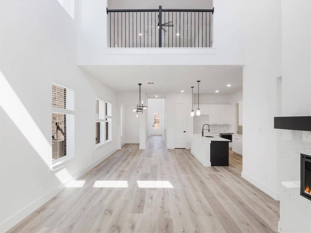 Ready Now! Feel like a Royal in our Alexander floor plan. Step into the epitome of modern living with this brand-new Monarch Home, where architectural sophistication blends seamlessly with everyday comfort. This 4-bedroom, 3.5-bath masterpiece includes a spacious game room and a functional pocket office, offering versatility for both entertainment and work-from-home lifestyles. Designed for discerning tastes, the home boasts premium finishes throughout. The Chef-Inspired Kitchen is outfitted with a JennAir appliance package, including double ovens and a 5-burner gas cooktop, making it a culinary dream. Enjoy the elegant touch of quartz countertops, a pot filler, Blanco Silgranit sink, and soft-close cabinetry with upgraded hardware. A decorative backsplash adds a sleek, modern flair. Gather around the crystal-accented gas fireplace under the ambient glow of luxury Kichler lighting. The Karastan Cultivated wood flooring in common areas downstairs as well primary bedroom, combined with 8-foot doors and 12x24 sleek tile accents, creates a clean and contemporary vibe. The Resort-Worthy Primary Suite has a luxurious primary bath featuring floating cabinets, a large frameless glass shower, decorative tiles, framed mirrors, and quartz countertops with undermount sinks.