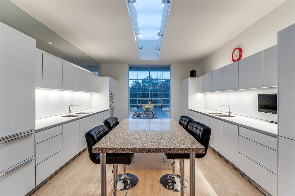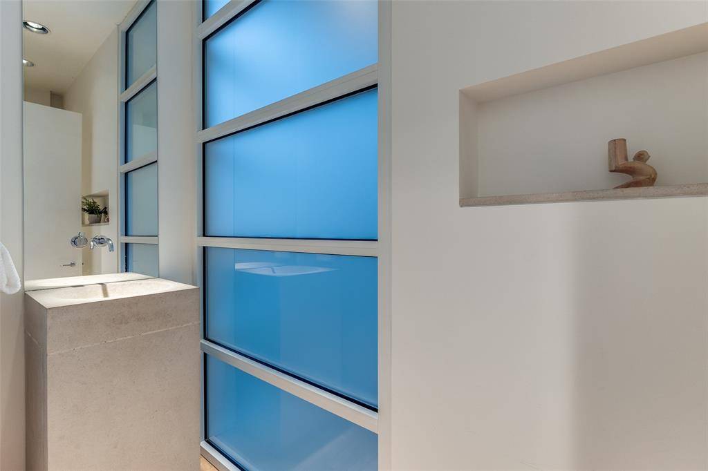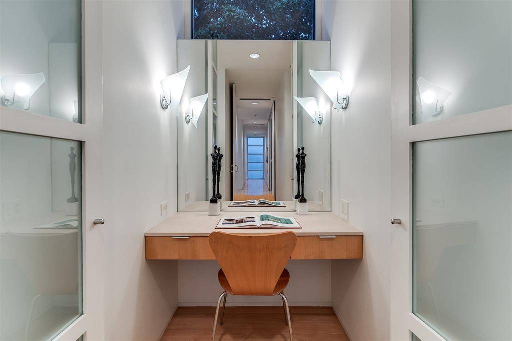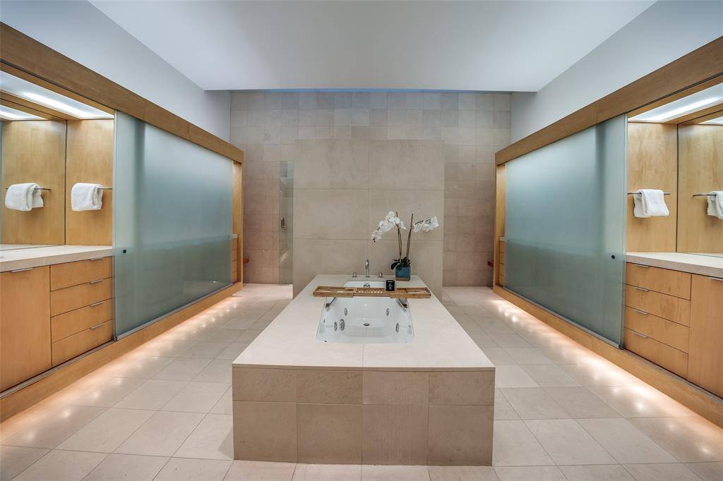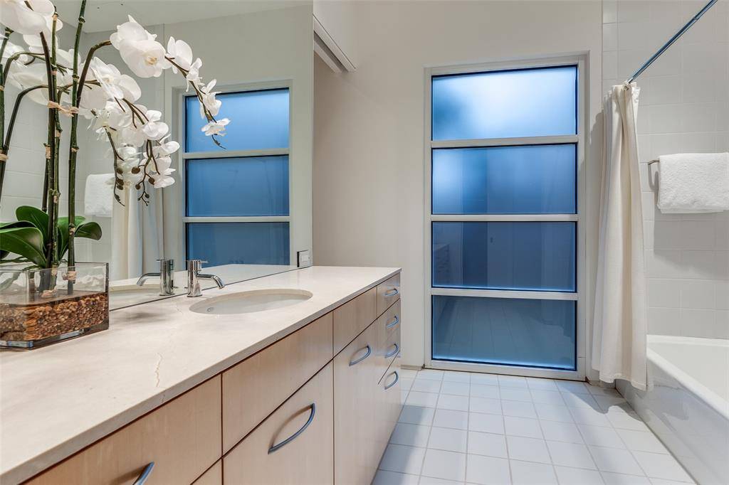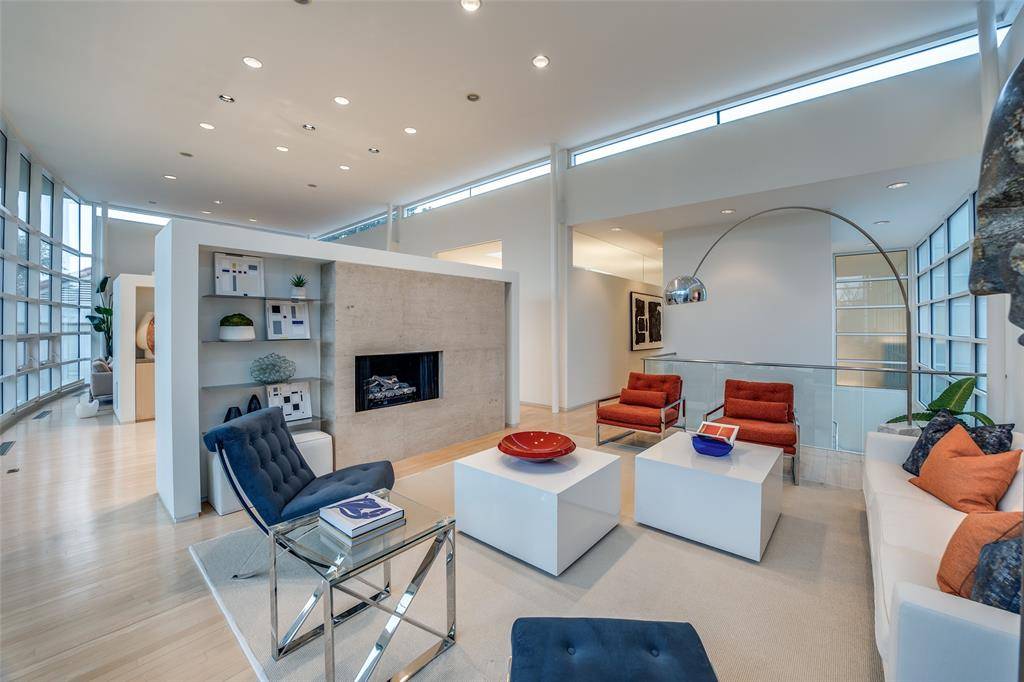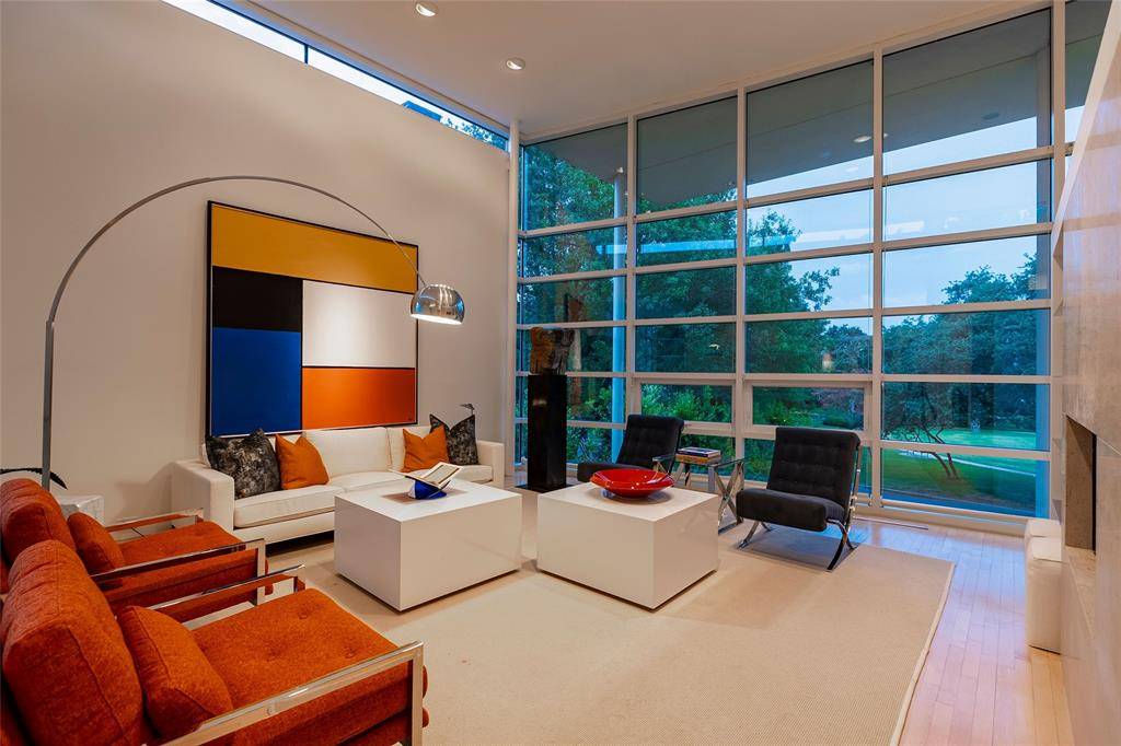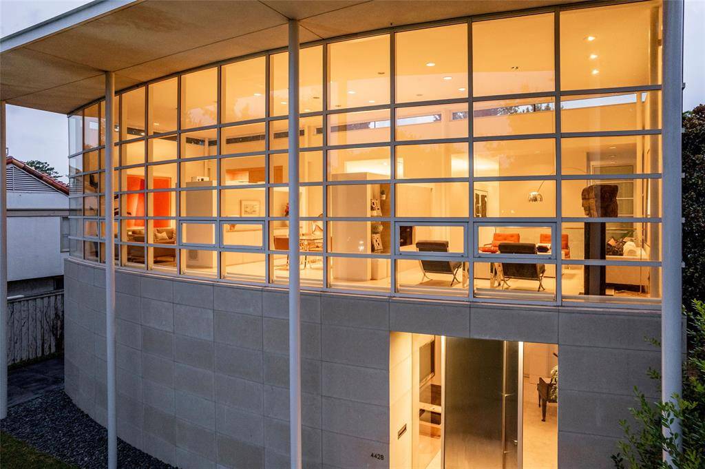 Experience the epitome of contemporary luxury in this breathtaking limestone-clad home, designed by renowned architect Lionel Morrison and built in 2001. This architectural masterpiece offers an exceptional blend of style, comfort, and functionality, located steps from Flippen Park. The first floor features a spacious entry with beautiful marble floors, elevator and stairwell access to the second floor, as well as generously sized secondary bedrooms, each with an en-suite bathroom. The second floor offers open-concept living spaces and dining with tall floor to ceiling windows and sweeping views of Flippen Park. The recently renovated sleek Bulthaup kitchen is equipped with Miele appliances, a dedicated wine refrigerator, and convenient access to a large outdoor kitchen and living area. An oversized primary suite with a spa-inspired en-suite bathroom and a study complete the second floor. The low maintenance backyard is lined in evergreen magnolias for privacy, has a tranquil water feature and gas fireplace — perfect for entertaining. A separate, additional 282 sq ft air conditioned flex space adjacent to the backyard is currently storage, but plumbed and ready to be converted into a guest suite, gym or studio. Additional highlights are pier and beam construction, a large 3-car garage with ample storage, and 3 new AC units for modern efficiency and comfort. This timeless home offers a unique opportunity to live in an architecturally significant home while enjoying the serenity and beauty of Flippen Park. Short walk to Highland Park Village, Bradfield Elementary, and Whole Foods. Schedule your private showing today!
