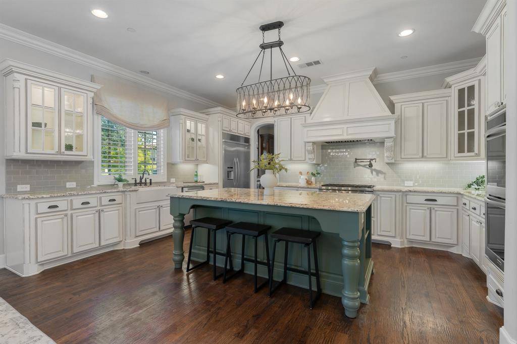 Thoughtfully designed with both daily comfort and upscale entertaining in mind, the home features a functional floor plan with soaring ceilings, custom millwork, designer lighting, and walls of windows that bring in natural light. The chef's kitchen includes commercial-grade appliances, an oversized island, custom cabinetry, and seamless flow to the main living areas.