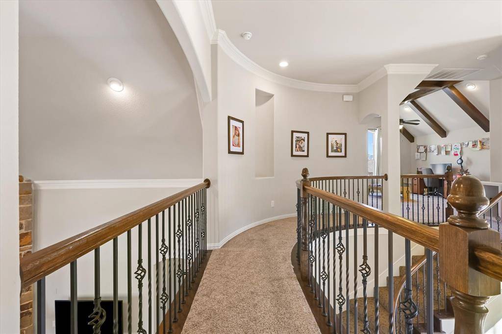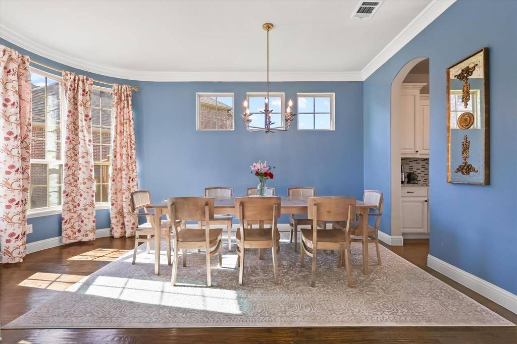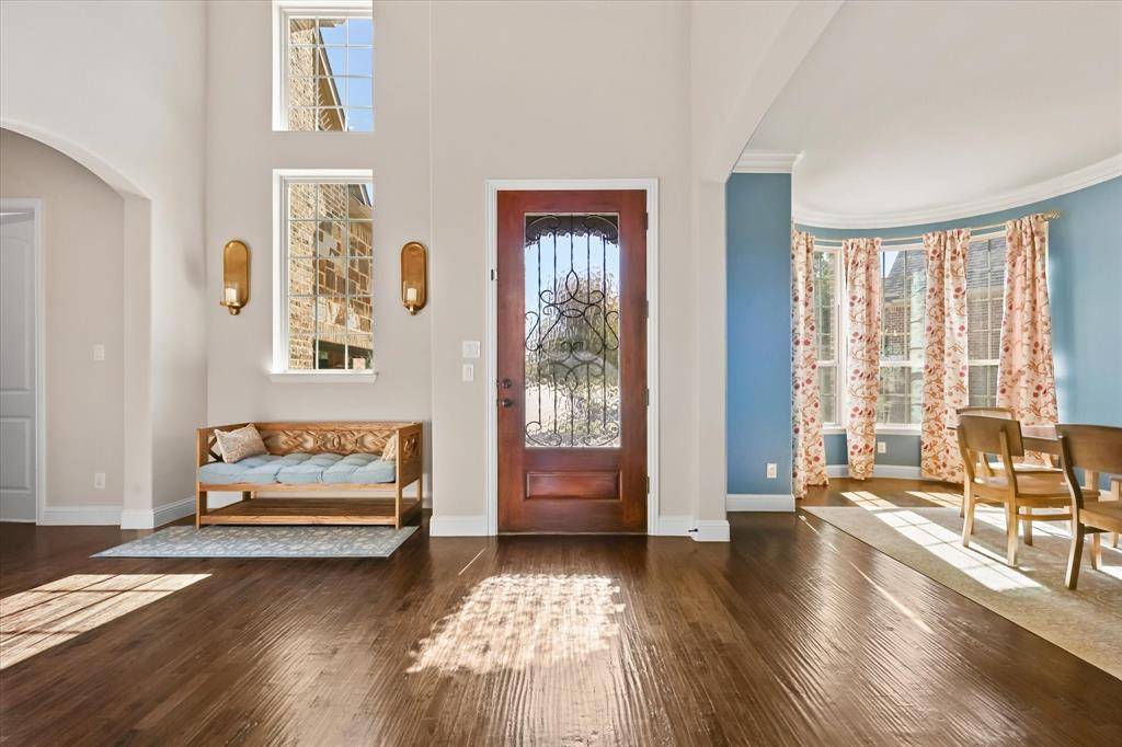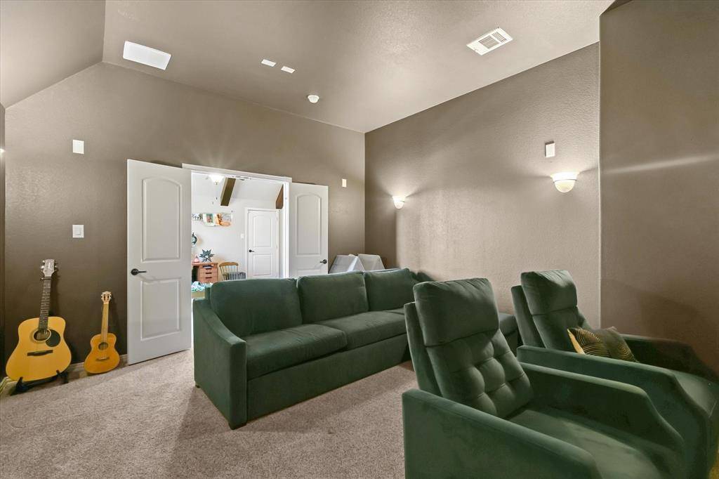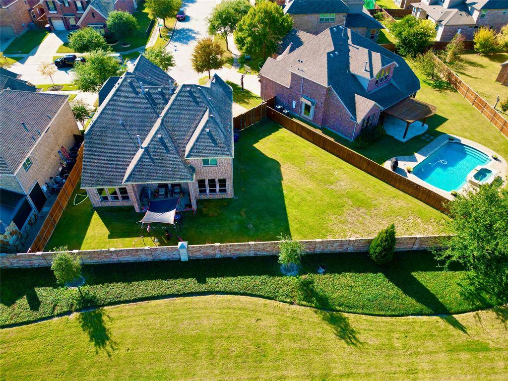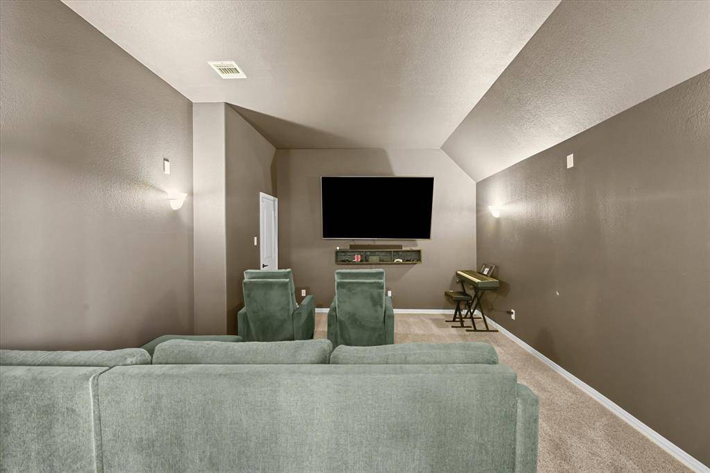 Step into luxury with this stunning custom built two story home, perfectly situated in one of Frisco's most desirable gated communities. Offering both elegance and comfort! Primary suite offers a private retreat with dual vanities, soaking tub, separate shower, and dual walk-in closets. Guest room conveniently located for comfort and privacy. This home offers a-lot of open space, with the upstairs overlooking the main floor. Open concept Kitchen, dining, and living areas flow seamlessly together with vaulted ceilings and balcony views from the second floor. Theater room a dedicated entertainment space for movie nights and more. Enjoy a large private backyard ideal for hosting and relaxation. The community is a 24 hour secured community, residents enjoy exclusive access to premium amenities, including a fitness center, resort style pool, walking and biking trails, multiple playgrounds, so much more. This home combines modern luxury, functionality and security all within a vibrant, family friendly neighborhood in the heart of Frisco, Texas.