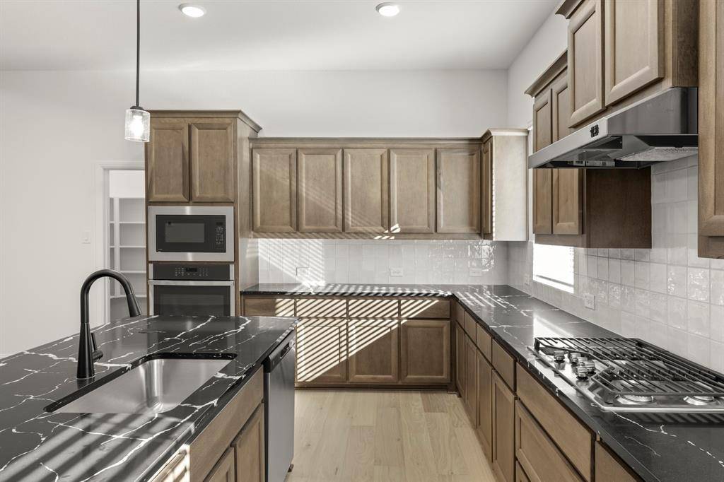 MLS# 21135493 - Built by Pacesetter Homes - Ready Now! ~ This stunning 4-bedroom, 3-bath, two-story home offers expansive living space and high-end finishes throughout. A grand circular staircase welcomes you into the open layout, which includes a private study, deluxe kitchen with 36 cabinets, pot and pan drawers, pull-out trash bin, white tile backsplash, and a stainless steel appliance package. The spacious family room features added windows for abundant natural light, while the extended covered patio is perfect for outdoor entertaining. Upstairs, enjoy a vaulted-ceiling game room and separate media room for ultimate relaxation and fun. The master suite is a luxurious retreat with a vaulted ceiling, chrome finishes, dark quartz countertops, a walk-in shower with seat, and brushed nickel light fixtures. Full gutters surround the entire home for added convenience and curb appeal. Blending elegance, functionality, and comfort, this home is designed for modern living. Your Pacesetter Home comes equipped with a suite of smart features designed to enhance everyday living.-Ring Video Doorbell-Brillant Smart Home System to control lighting and music-Honeywell Smart T6 Thermostat for energy savings-WiFi-enabled Garage Door-Rainbird Wifi-capable Sprinkler SystemPlus, enjoy added support with White Glove Service a personalized, post-closing appointment to get all your smart home features connected and ready to use.