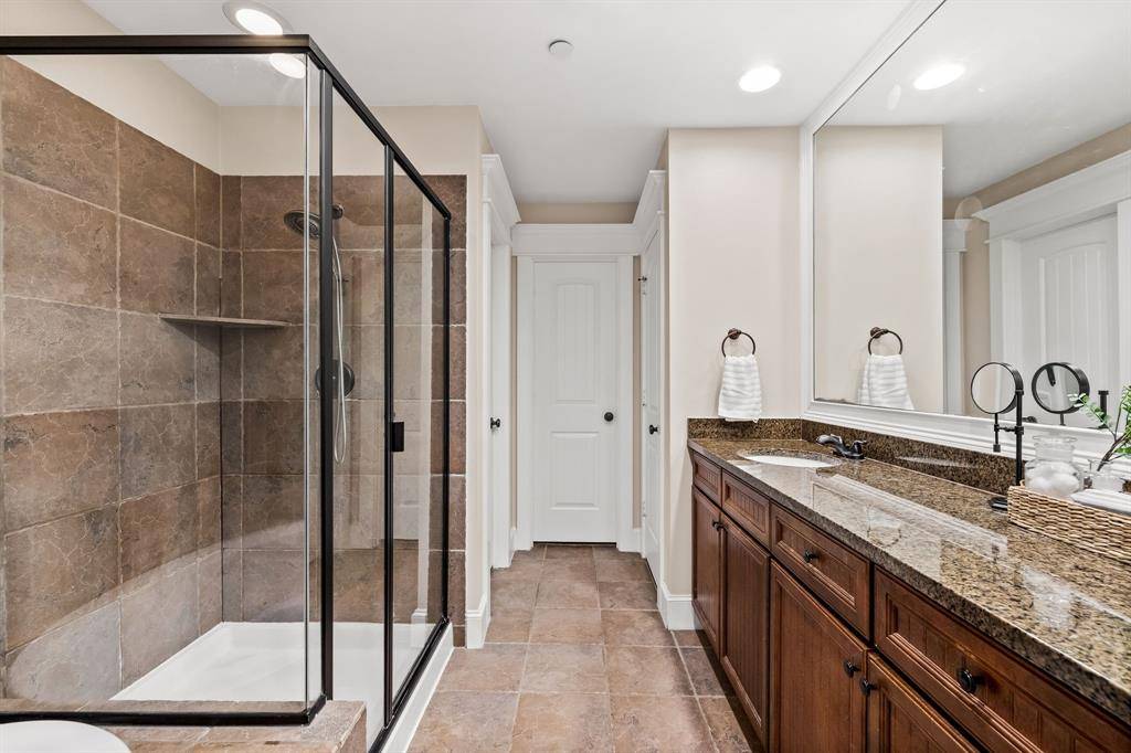 The second floor is designed for everyday living and entertaining, with an open-concept kitchen, dining, and living area that features soaring ceilings, abundant natural light, and a convenient half bath. The chef's kitchen boasts granite countertops, an island, rich solid wood cabinetry, and a gas range, creating the perfect space to cook and gather. Upstairs, both bedrooms are generous in size and filled with light. The primary suite includes dual sinks, a soaking tub, and a separate shower, while the secondary bedroom is equally spacious with access to its own full bath. A full-size laundry room completes the top floor.