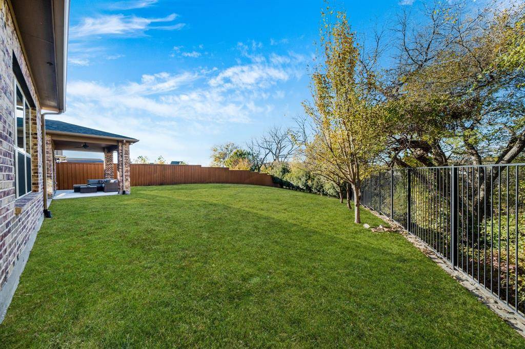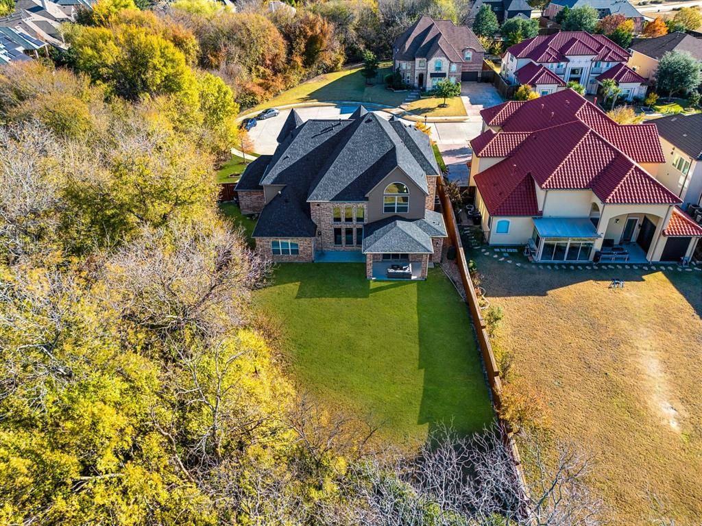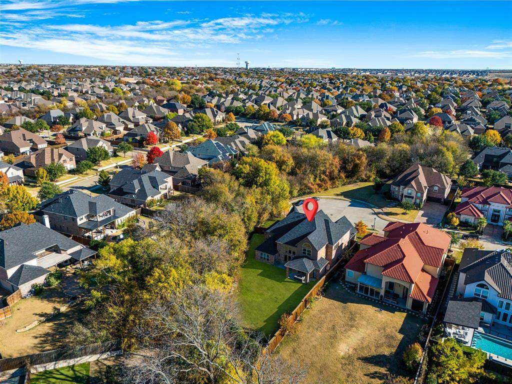 Opportunities like this are increasingly rare in Frisco. This custom Toll Brothers home is just minutes from the PGA Headquarters and the new Universal Kids Resort, tucked away at the end of a quiet cul-de-sac within Frisco's GATED Latera community and zoned to top-rated FRISCO ISD. The setting offers privacy, security, and architectural presence, with mature trees framing a serene backyard that provides ample space for a future pool and outdoor living. Inside, soaring ceilings, abundant natural light, and refined details create an elegant yet welcoming atmosphere. The main level features a private study, a spacious primary suite with a sitting area and spa-like bath, and a secondary ensuite bedroom downstairs that is ideal for multigenerational living or long-term guests. The gourmet kitchen is designed for both everyday living and entertaining, featuring granite countertops, a built-in refrigerator, gas cooktop, double ovens, an oversized island, and a large walk-in pantry. A full bath with direct backyard access is thoughtfully positioned for future pool plans. A grand curved staircase serves as a stunning focal point and is complemented by a secondary staircase for added convenience. Upstairs, three additional bedrooms provide generous accommodations, along with a media room featuring a wet bar and surround sound that opens to a large game room, creating an exceptional layout for entertaining and relaxation. Latera offers gated security, walking trails, and a premier Frisco location near upscale shopping, dining, and major highways. This exceptional home delivers a compelling blend of luxury, privacy, and long-term value in one of Frisco's most desirable gated communities.