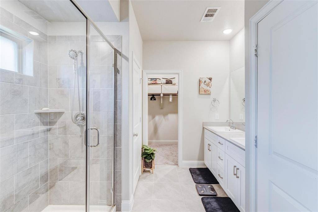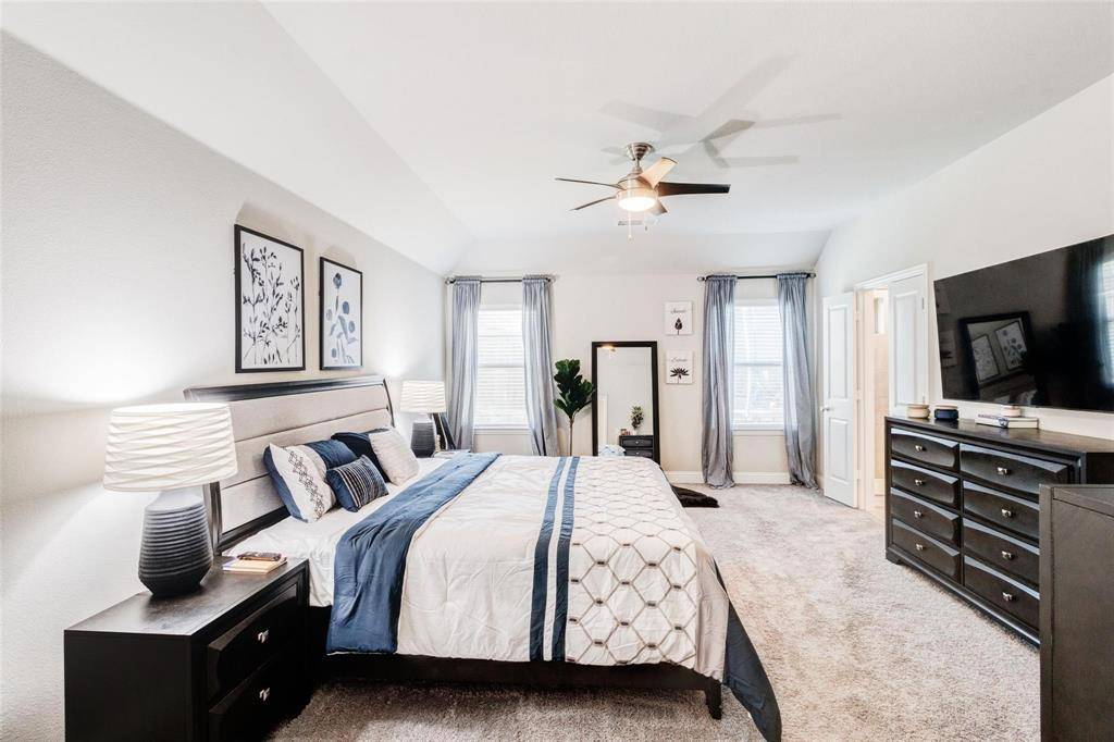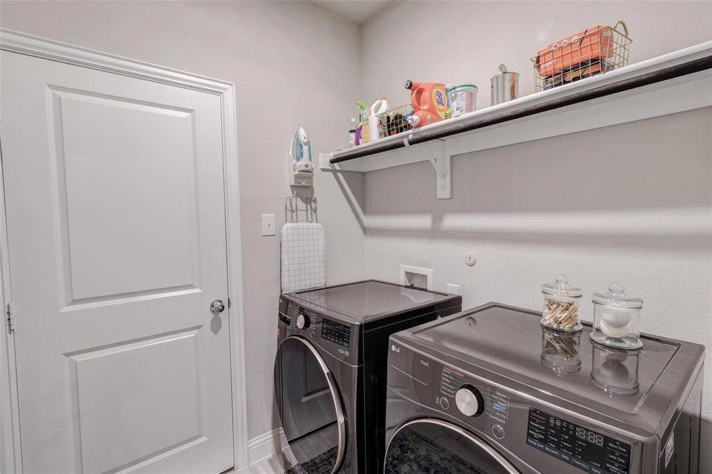 The modern kitchen features a large island, granite countertops, double ovens, stainless steel appliances, and a reverse osmosis (RO) water system for clean drinking water. For your convenience, the home comes with a washer and dryer and includes a Tesla EV charger in the garage, ideal for electric vehicle owners. The spacious primary bedroom includes a large walk-in closet, separate shower, and soaking tub. Secondary bedrooms and the study have upgraded carpeting for added comfort. Located in highly rated Prosper ISD, this vibrant community offers two swimming pools, two fitness centers, a clubhouse, a soccer park, walking trails, and a dog park. Conveniently close to US-380, Dallas North Tollway, and the PGA Headquarters.