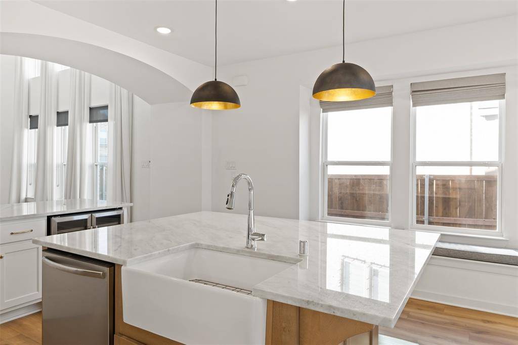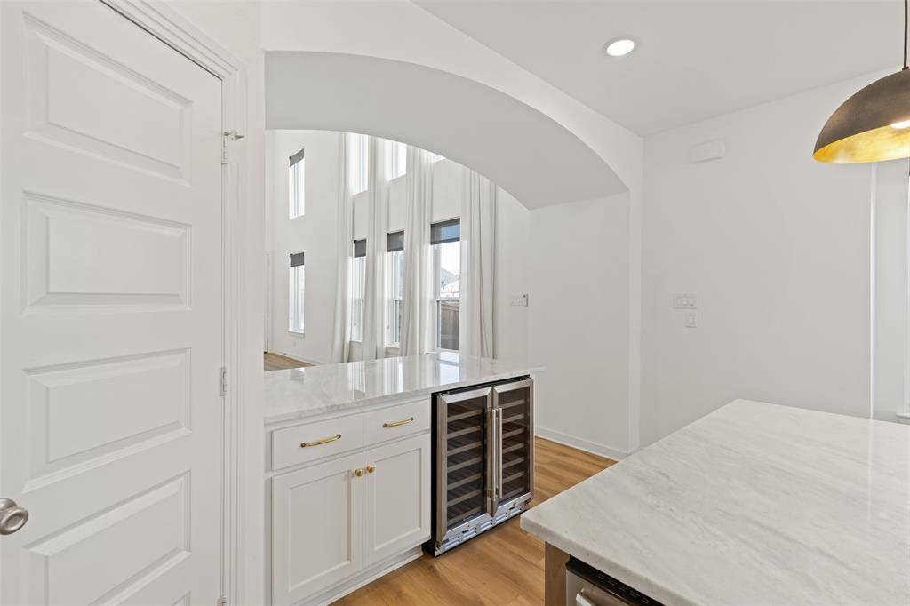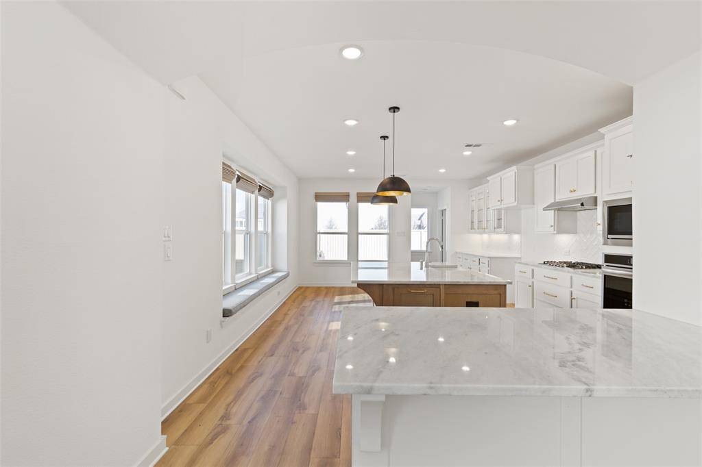 This beautiful Highland home is perfectly positioned in the highly sought-after Sandbrock Ranch community. Offering 4 bedrooms and 3 baths, this residence blends timeless elegance with modern luxury at every turn. Luxury vinyl plank flooring spans the first floor, while vaulted ceilings in the entry and living areas create a light-filled, open atmosphere designed for both everyday living and entertaining. The gourmet kitchen is truly the heart of the home, featuring quartzite countertops, a gas cooktop, designer pendant lighting, a wine fridge, and a charming built-in bench seat. Additional cabinetry with lighted glass-front uppers in the dining area adds both style and functionality. The primary suite is a private retreat, highlighted by bay windows that create space for a cozy sitting area. The spa-inspired ensuite bath showcases a freestanding soaking tub, an upgraded frameless glass shower, and an expansive walk-in closet designed for effortless organization. Also on the main level, you'll find a guest bedroom and full bath with another frameless glass shower; ideal for visitors or multi-generational living. Upstairs, a spacious game room is joined by two additional bedrooms and a full bath. Plush upgraded carpet and premium padding throughout the second floor add comfort and refinement. Custom drapery and window coverings throughout the home complete the designer feel. Out back, enjoy serene privacy with a backyard that backs to a greenbelt and features an extended patio—perfect for outdoor entertaining or quiet evenings. A rare two-and-a-half-car garage provides added storage and convenience. Residents of Sandbrock Ranch enjoy an exceptional lifestyle with resort-style amenities including the Carriage House, fitness center, pool, playground, splash pad, dog park, and the beloved Tree House. This is more than a home—it's a community you'll love to be part of. Schedule a showing today!