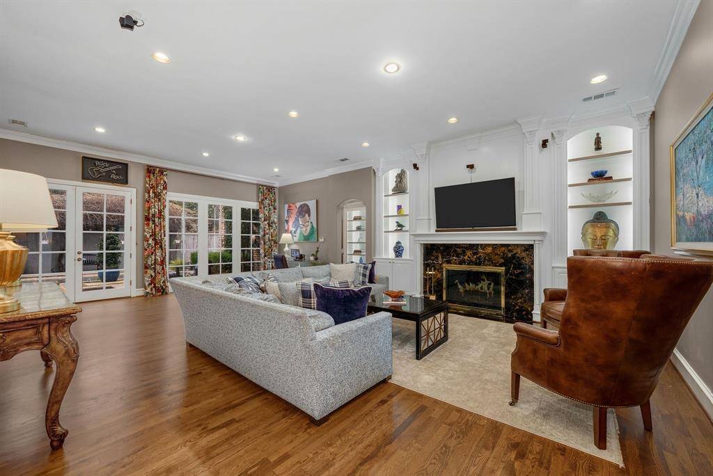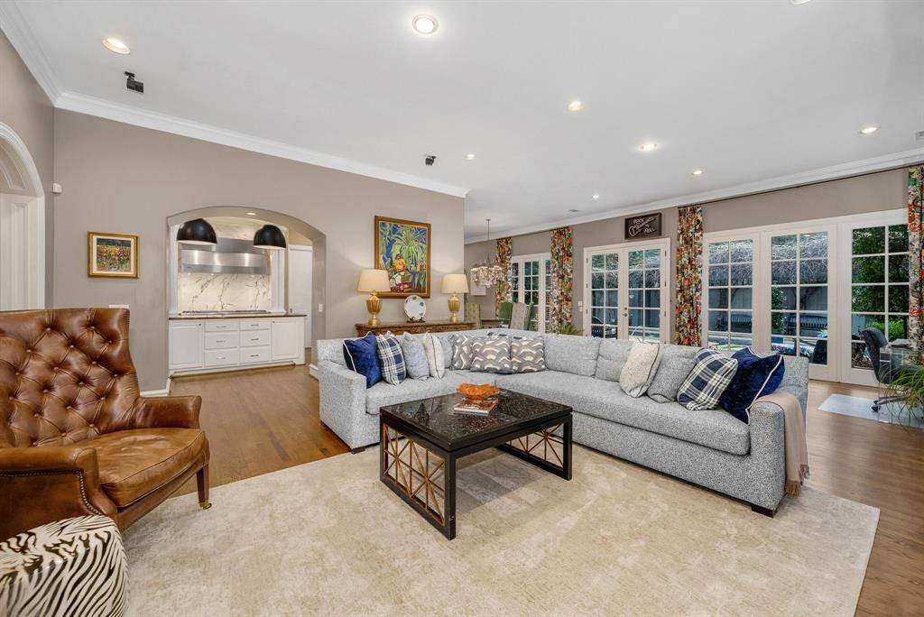 At the heart of the home, the chef's kitchen is equipped with Viking appliances, a Sub-Zero refrigerator, granite countertops, dual dishwashers, a wine fridge, and a wet bar, making it ideal for holidays and entertaining. The flow between living spaces is perfectly suited for hosting family gatherings and weekend events.