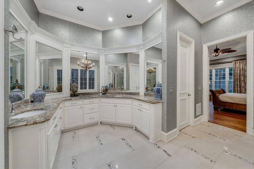 The thoughtfully designed floor plan features a first-floor primary suite with spa bath and walk-in closets, a private office, four distinct living areas, two dining areas, and two fireplaces. An elevator conveniently located near the kitchen enhances everyday ease and long-term livability. Upstairs offers four spacious bedrooms along with a game room and a sound-proofed media room, allowing kids, guests, and adults to enjoy separate spaces simultaneously.