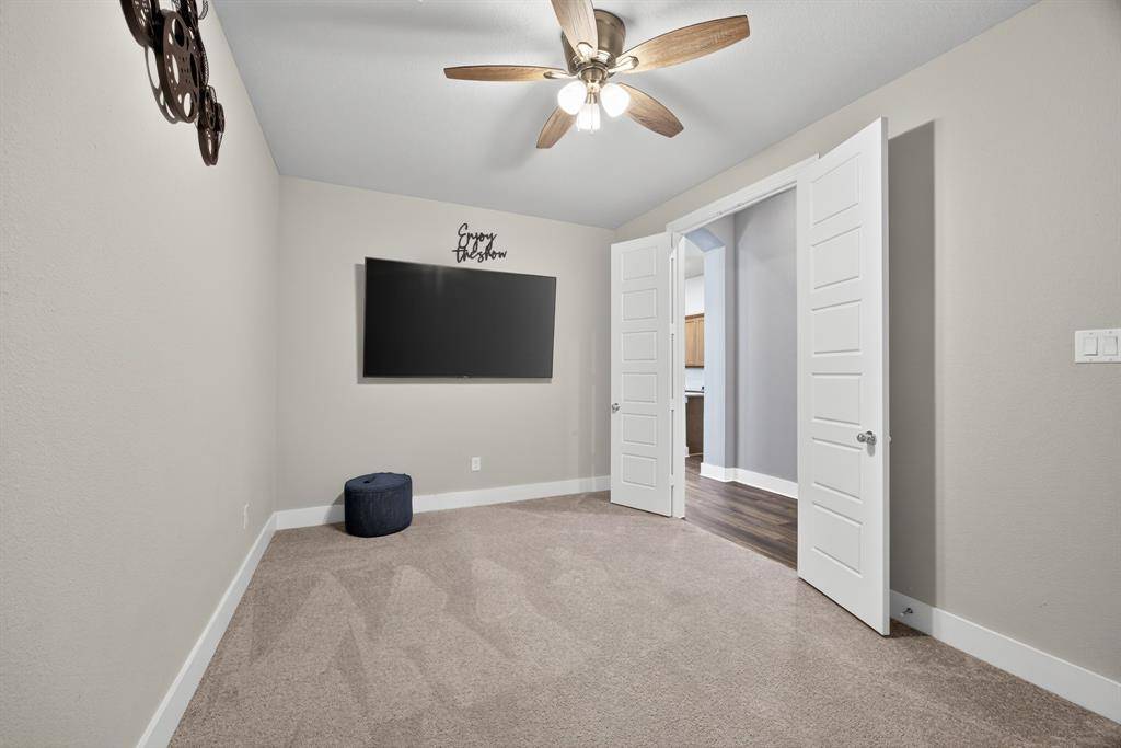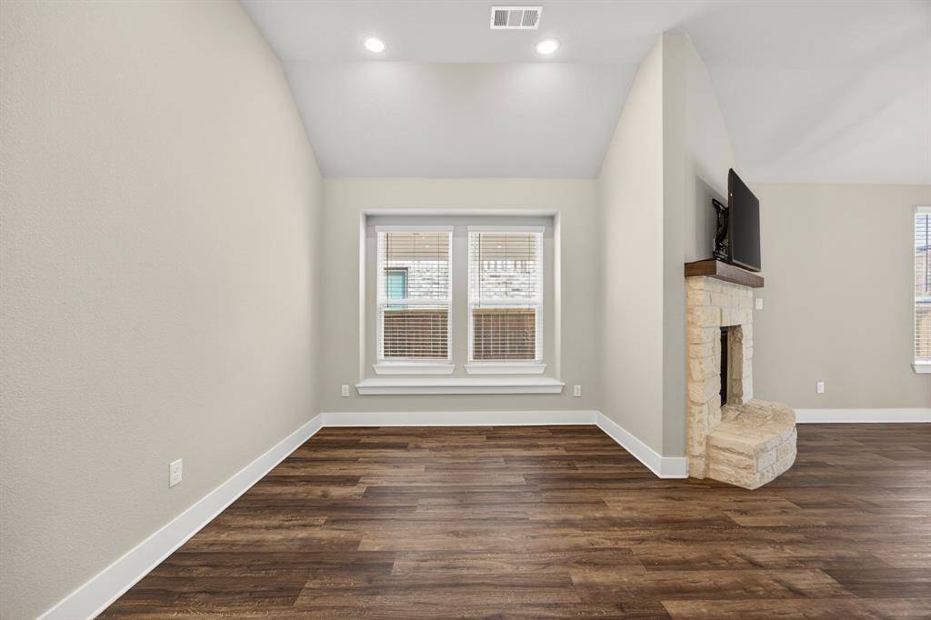 Spectacular single story Highland Home situated in the highly sought after Sandbrock Ranch featuring open floor plan, 4 spacious bedrooms, study, entertainment room and 3 full baths. Meticulous attention to detail throughout with features including luxury vinyl plank flooring, expanded base, decorative lighting, upgraded 8 foot front door and interior doors throughout, vaulted ceilings and more. The family room offers a stone fireplace, an abundance of natural light and seamlessly flows to the dining room and the gourmet kitchen with granite countertops, walk-in pantry, 5 burner 36 inch gas cooktop, stainless steel appliances, pendant lighting & breakfast bar. An entertainment room makes for a wonderful mediaroom, gameroom, playroom or even craft room. The private primary suite with sitting area, ensuite bath with drop in soaking tub, separate shower and H+H split vanities. Secondary bedrooms are split from primary and are generous in size. Enjoy evenings entertaining family and friends in the back yard with the extended covered patio and room to play. The elementary school is located within the community which also features a community pool, club house, fishing, fitness center, park, playground, jogging & bike paths! Centrally located minutes from dining, entertainment and endless shopping.