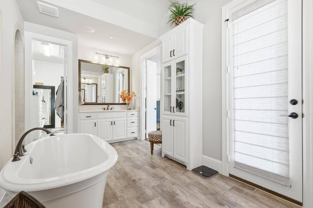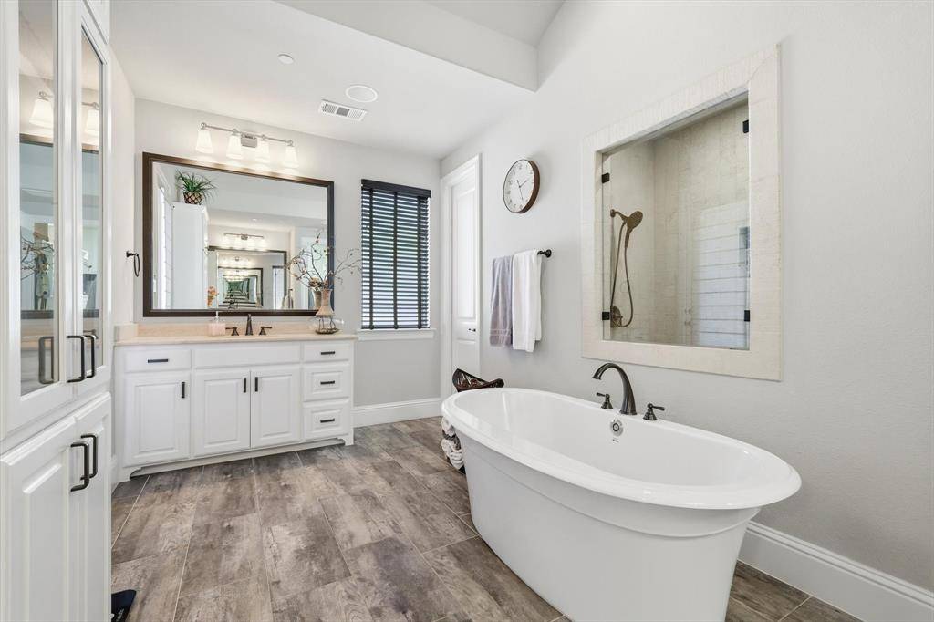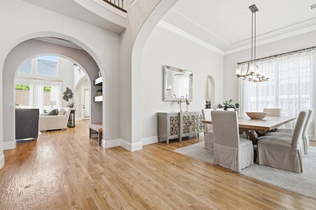 Stunning white-painted brick estate built by Darling Homes with over $400.000 in Upgrades & Improvements in Frisco's most desirable gated guarded neighborhood, Newman Village! Show stopping private resort-style backyard perfect for entertaining family & friends with a custom pool with smart phone controls, spacious covered patio with a fireplace, outdoor kitchen plus fully automatic custom landscape lighting with smart phone controls. The ideal perfect multi generational floor plan, impressive primary suite downstairs with fireplace & terrific views of the gorgeous backyard, private in-law casita with its own outdoor living space, front 3-car swing garage, media & office on 1st floor, 3 generous sized secondary bedrooms up all with ensuite baths plus a game room. Designer finishes and numerous upgrades throughout. Wide open floor plan with large windows, soaring ceilings & abundant natural light. Additional Main Garage refrigerator water line, features: wired video surveillance system, Tesla Car charger, Nest doorbell, thermostats & door locks, high speed fiber optics optional access, Commercial grade WIFI inside and out, house audio system indoor and outdoor. centralized telecom closet w UPS backup, custom built-ins, extensive wood flooring & designer lighting. High-End gourmet chef inspired kitchen with commercial appliances & large eat-in island. This 5 bedroom white-painted brick home is move-in ready! Newman Village is known for its sophisticated classical architecture & desirable location with quick access to PGA, DNT, The Star, HEB, shopping, dining & entertainment. Community pool & tennis courts! Great schools. This one will go fast!
