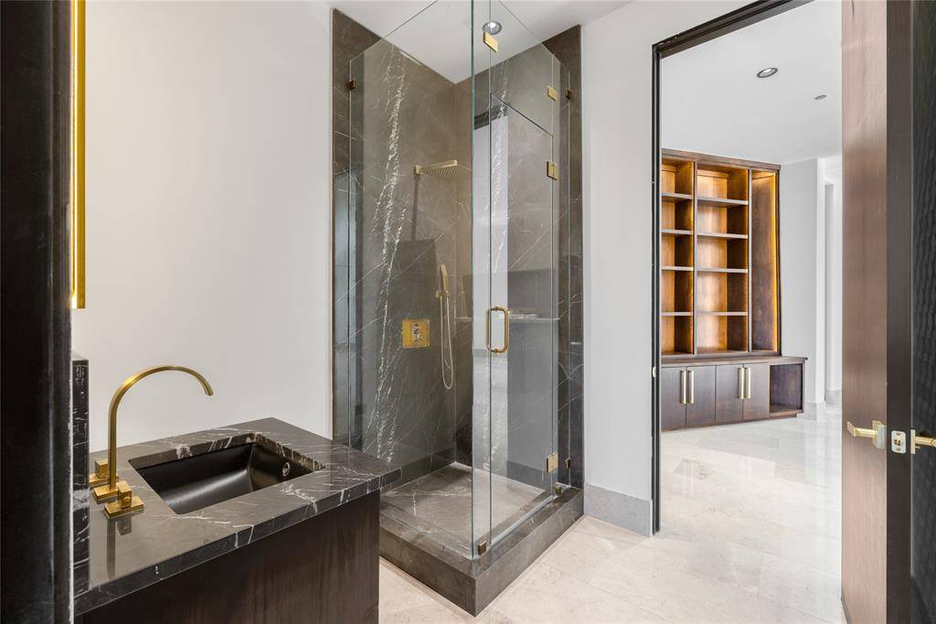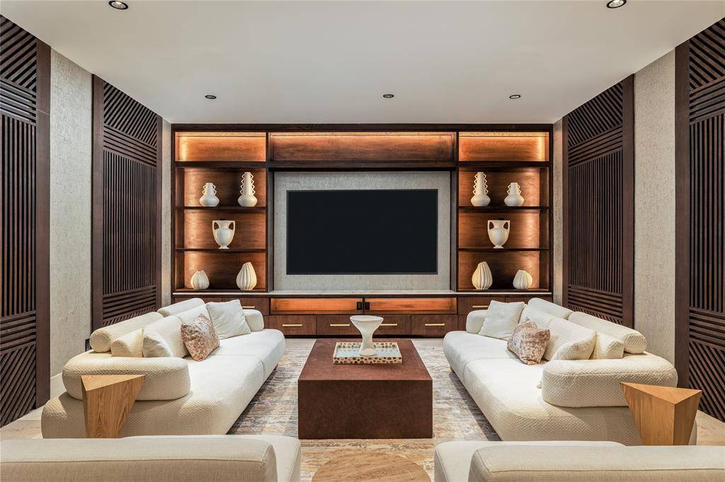 This home is defined by timeless materials and intentional design. Ojinaga limestone and Travertino Jalapa walls establish warmth and texture, complemented by white oak millwork that runs throughout—from custom cabinetry to beautifully finished closet interiors. The open chef's kitchen is built for entertaining with premium appliances, generous workspace, and a dedicated wine room for effortless hosting. Visual Comfort lighting and statement chandeliers elevate the mood from day to night.