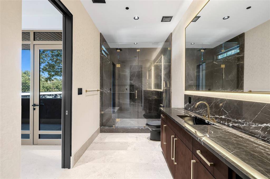 Step outside to a covered loggia, outdoor kitchen, pool, and firepit surrounded by mature trees, landscape lighting, and a private backyard sanctuary. A five-car garage and private balconies complete the experience—an exceptional opportunity on one of Dallas' most recognized addresses.