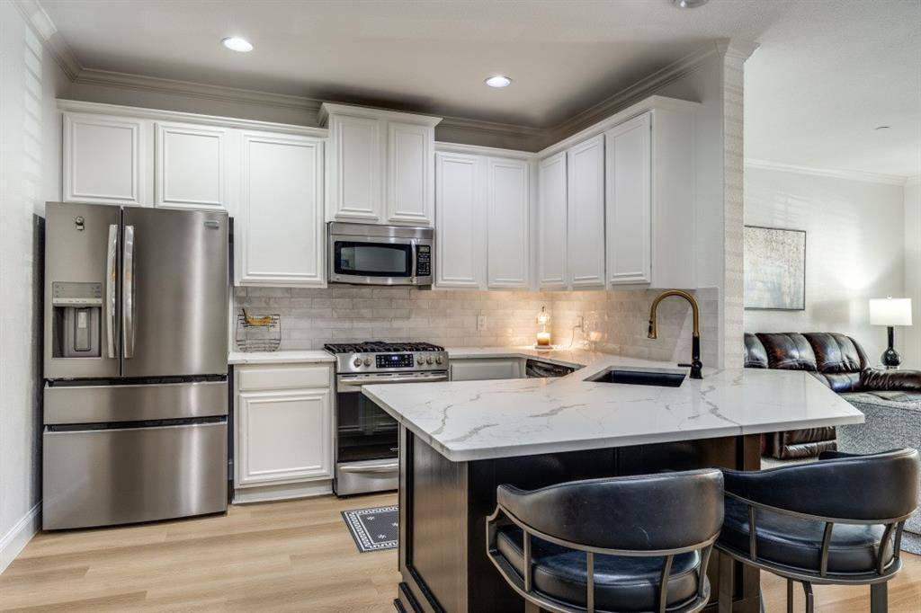 The kitchen is a standout, crafted for both everyday living and entertaining, featuring new quartz countertops and backsplash, walk-in pantry, and a striking, newly installed Luxury Vinyl Plank flooring, new baseboards, stove and dishwasher. The brick feature wall that adds depth and architectural interest. A refreshed paint lower level brings the space together with a modern yet classic feel, while a conveniently located half bath completes the main floor.
