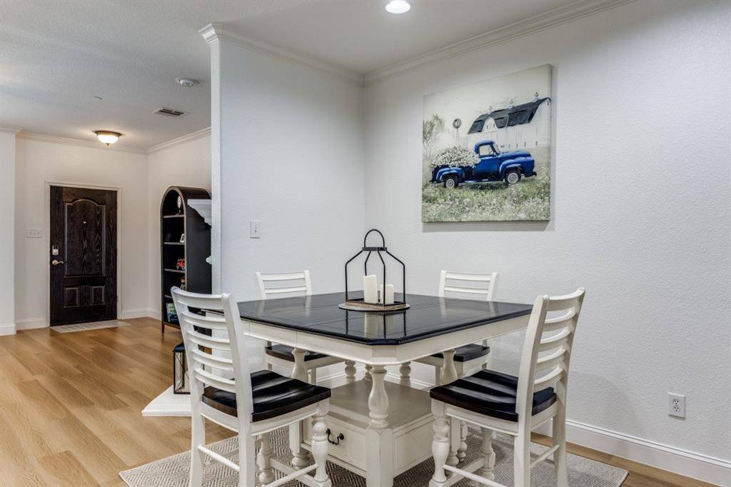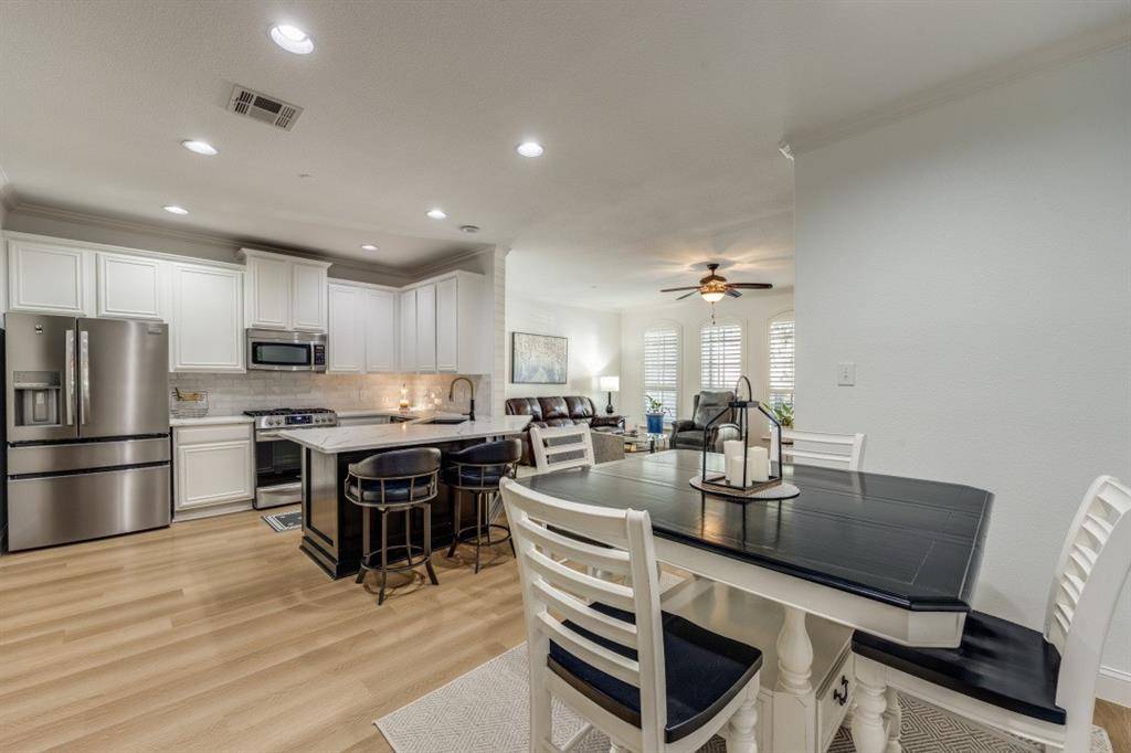 Located in Frisco ISD, is an exceptional chance to own a distinctive luxury townhome in the prestigious Hemingway at Craig Ranch. In this enclave sophistication and low-maintenance living come together seamlessly. Qualified buyers can receive up to a $3,000 lenders credit towards closing with our preferred lender. This beautifully cared-for residence is thoughtfully designed with high-end finishes and a timeless aesthetic that feels both polished and inviting. Step inside to find rich hardwood flooring extending through a spacious, sunlit living area, enhanced by elegant custom shutters that provide both style and privacy.
