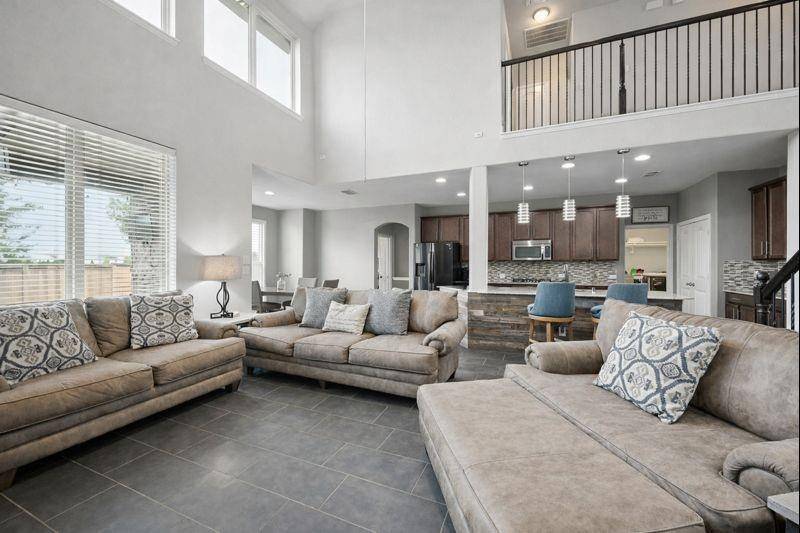Welcome to your private retreat in the highly sought-after TRINITY FALLS master-planned community in McKinney. This beautifully maintained 4-bedroom, 2.5-bath home offers a bright, open-concept design enhanced by custom designer lighting and a wood-accented kitchen island; that adds warmth and character. The flexible downstairs layout includes a spacious flex room—ideal as a home office or easily convertible to a fourth bedroom, to suit your lifestyle—while the kitchen opens seamlessly to a breakfast bar and oversized dining area, creating the perfect setting for entertaining and everyday living. Upstairs, enjoy a generous game room along with two well-appointed guest bedrooms that share a full bath with dual sinks, plus a large walk-in attic providing exceptional storage space, rarely found in comparable homes. Step outside to a charming covered front porch and an extended back patio already equipped with gas and water lines—ready for your future outdoor kitchen and backyard oasis. Nestled within a vibrant community near parks, scenic hike-and-bike trails, stocked fishing ponds, 21-hole disc golf, resort-style pools, a modern fitness center, and year-round neighborhood events. Traffic is shifting to major thoroughfares from FM 543 to State Highway 5, which is being rebuilt into a four-lane divided roadway, with construction phases continuing through 2026–2027 to improve traffic flow. Future growth including the McKinney Airport expansion, Sunset Amphitheater, water parks and everything the City of McKinney has to offer!