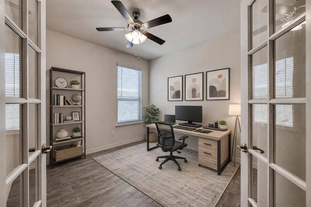 A private home office offers a quiet and functional work-from-home space, while the generously sized bedrooms provide flexibility and comfort for family members or guests. Each bathroom is well-appointed, offering both style and functionality.