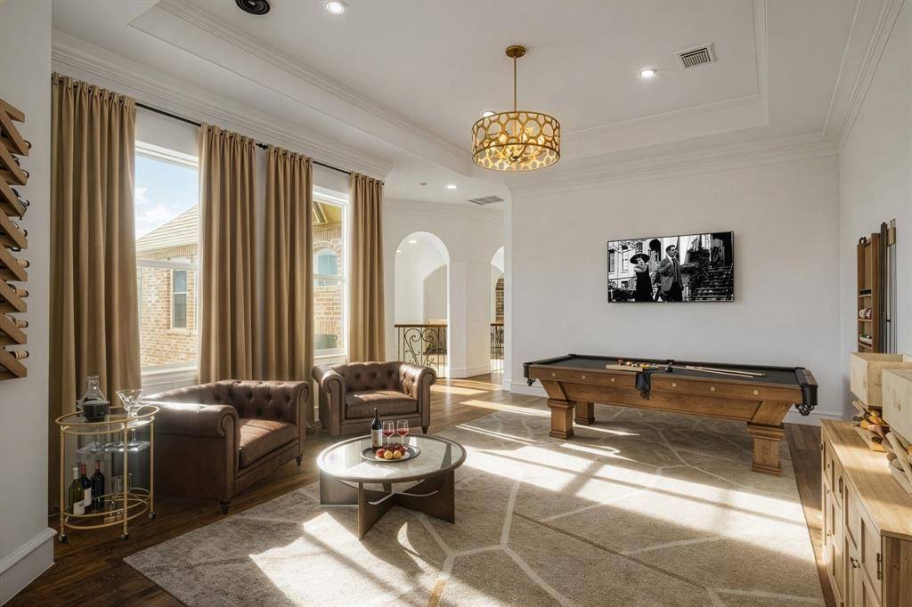 Welcome to 6363 Pintail Lane, a wonderful opportunity in the prestigious gated community of Starwood Villages in Frisco. Blending European elegance with French Country architecture, this recently updated home offers 5 en-suite bedrooms. 5 living areas including entry living, grand living, a library with a fireplace also open to living, a media room, and a game room. The redesigned first floor showcases a chef's kitchen with a massive island, built-in refrigerator, Viking range, and open flow into elegant dining and living spaces—perfect for entertaining. The private primary suite is a true retreat with views of the backyard oasis, a spa-like bath with glass-enclosed shower and tub, and an expansive dressing closet. Upstairs, each bedroom features high ceilings, granite counters, and walk-in closets, and one with a covered balcony for sunset views. Set on over half an acre backing to a wooded creek, the backyard is a paradise with a saltwater pool and grotto waterfall, outdoor living and dining areas, and lush landscaping. Five Carrier HVAC Units and Two Rinnai Hot Water Heaters all with corresponding warranties will be installed in the first week of March. Carpet Installed in Upstairs Bedrooms and Media Room on February 25th. Front Yard Re-sodded by landscape service February 25th. Atoms Installed New Gas Meter February 25th. See Attached Graphic for More information. The Home is Vacant, however some of the photos show beautiful virtual staging. Be sure to click through the photos and the virtual tour. Enjoy the best of Starwood amenities...clubhouse, community pool, tennis, greenbelt, and trails—all just minutes from Frisco's top-rated schools, shopping, and dining. See StarwoodFrisco.Com to learn more about this wonderful Community.