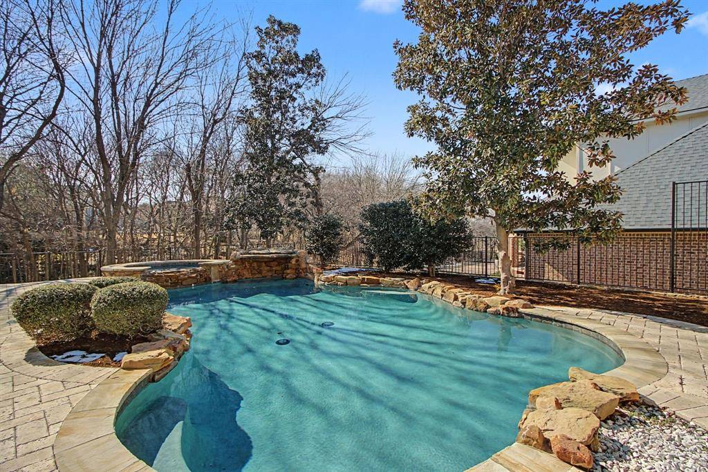 Welcome to 6363 Pintail Lane, a rare lease opportunity in the prestigious gated community of Starwood Villages in Frisco. Blending European elegance with French Country architecture, this recently remodeled home offers 5 en suite bedrooms, 5 living areas, including front living with fireplace also open to the library, a media room, the grand living room, and upstairs game room. The redesigned first floor showcases a chef's kitchen with a massive island, built-in refrigerator, Viking range, and open flow into elegant dining and living spaces—perfect for entertaining. The private primary suite is a true retreat with views of the backyard oasis, a spa-like bath with glass-enclosed shower and tub, and an expansive dressing closet. Upstairs, each bedroom features high ceilings, private baths, and walk-in closets. One upstairs bedroom opens to a covered balcony for sunset views, and another on the 1st floor opens to a covered courtyard overlooking the backyard oasis. Set on over half an acre backing to a wooded creek, the backyard is a paradise with a saltwater pool and grotto waterfall, outdoor living and dining areas, and lush landscaping. Enjoy the best of Starwood amenities—clubhouse, community pool, tennis, greenbelt, and trails—all just minutes from Frisco's top-rated schools, shopping, and dining.