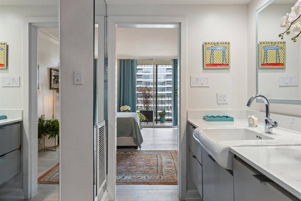 Perched on the 16th floor of one of Dallas' most prestigious high-rises, this 1,813 sq. ft. residence offers an unmatched blend of modern luxury, comfort, and convenience—set directly along the Katy Trail. Remodeled in 2019, the home balances sophisticated design with serene livability.