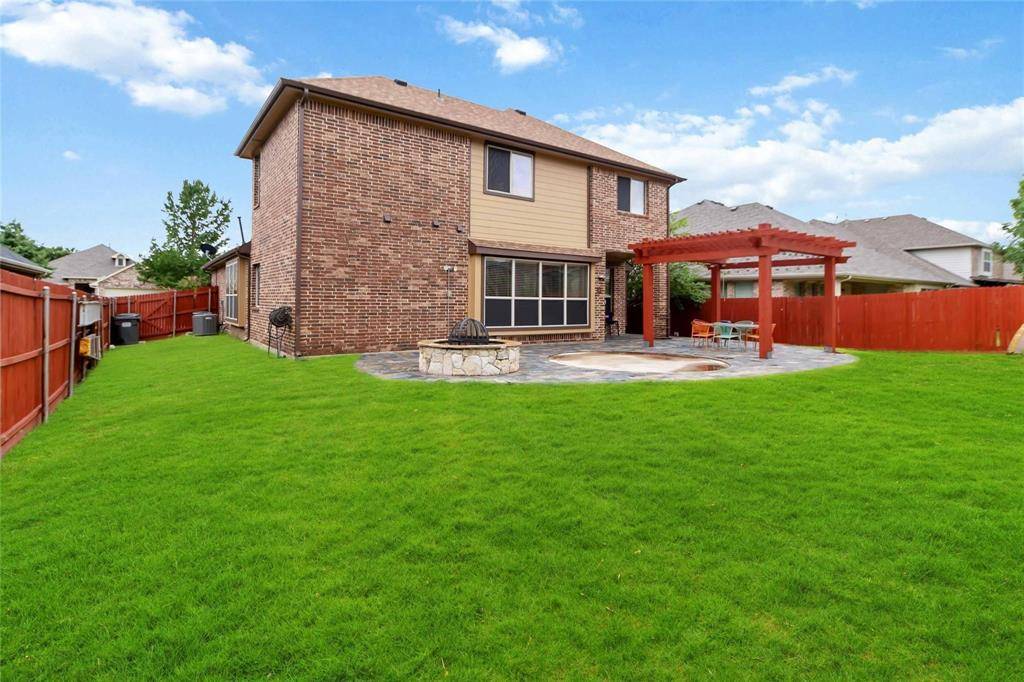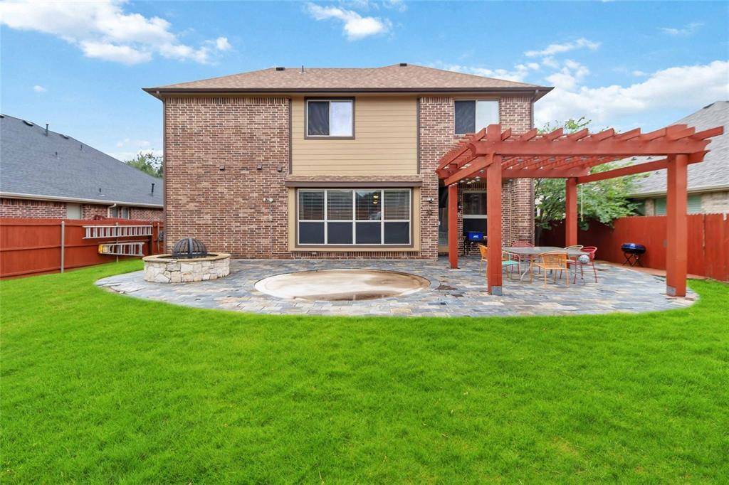 Located in El Dorado Estates West in Little Elm, this spacious two-story home features 4 bedrooms, 2.5 baths, and an open floor plan. The main level includes a primary suite with a bay window, dual sinks, garden tub, separate shower, and walk-in closet. The kitchen boasts granite countertops, a center island, gas cooktop, and pantry, flowing seamlessly into the living and dining areas. Upstairs, you'll find three additional bedrooms, a full bath, a large game room, and a media room. The fenced backyard includes a covered patio, pergola, fire pit, and outdoor TV hookup. Community amenities include a pool, park, and playground. Conveniently located near Lake Lewisville, Little Elm Park, shopping, dining, and major roadways such as FM 423 and Dallas North Tollway.