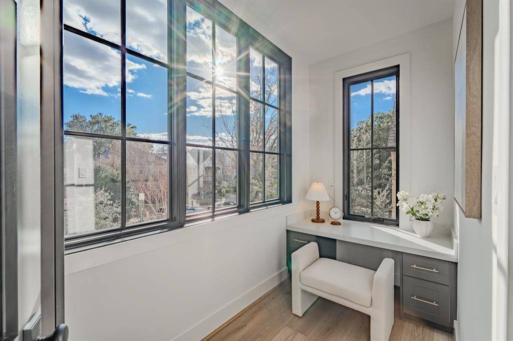 This highly functional three-story floor plan includes a private elevator, dedicated private office, smart home technology, and Pella doors and windows with automatic shades. The three-car garage features epoxy flooring and an electric vehicle charging outlet. Zoned to HPISD and within walking distance of Highland Park High School, Highland Park Village, and the shops along Preston, this front corner residence delivers modern luxury, timeless quality, and a superior position within the building.