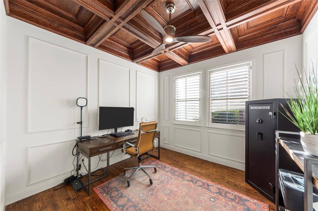 Step inside to find natural hardwoods and elegant crown molding running throughout the main living areas. The chef's kitchen serves as the heart of the home, originally renovated in 2022 with sparkling quartzite countertops and an updated island, perfect for entertaining. The luxury continues in the primary suite, featuring a custom closet system 2023 and a spa-inspired bath adorned with timeless marble. Notably, all four bathrooms were fully renovated.