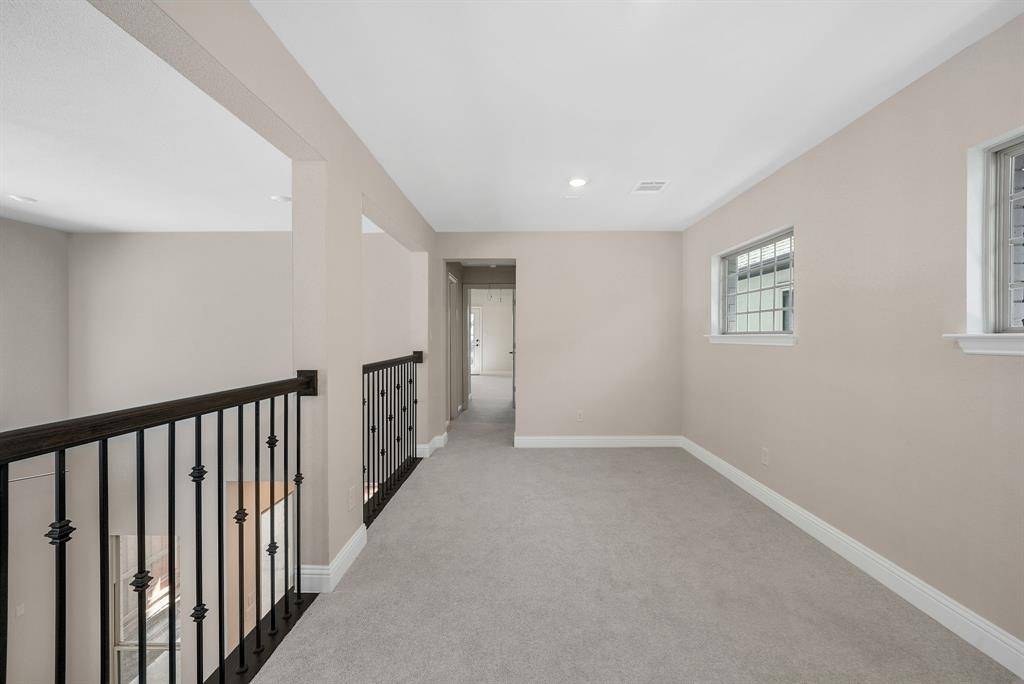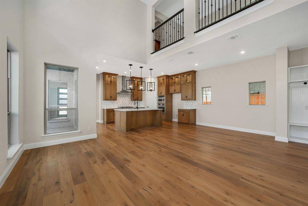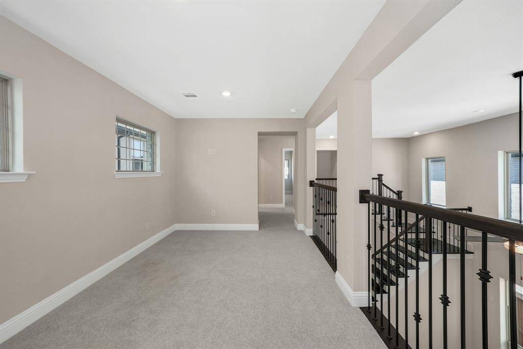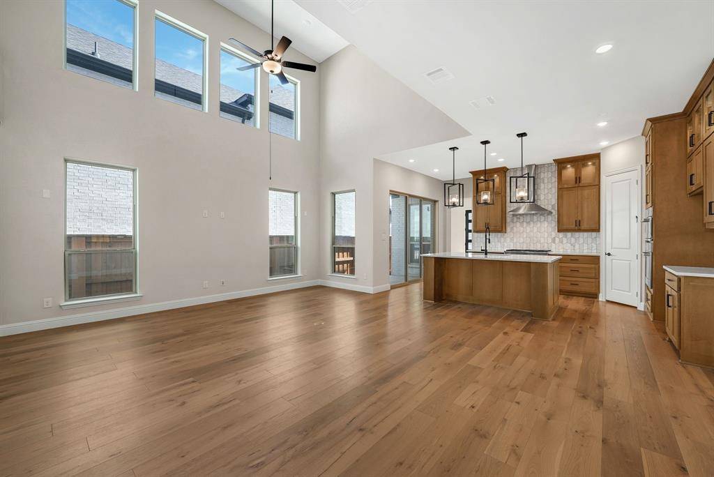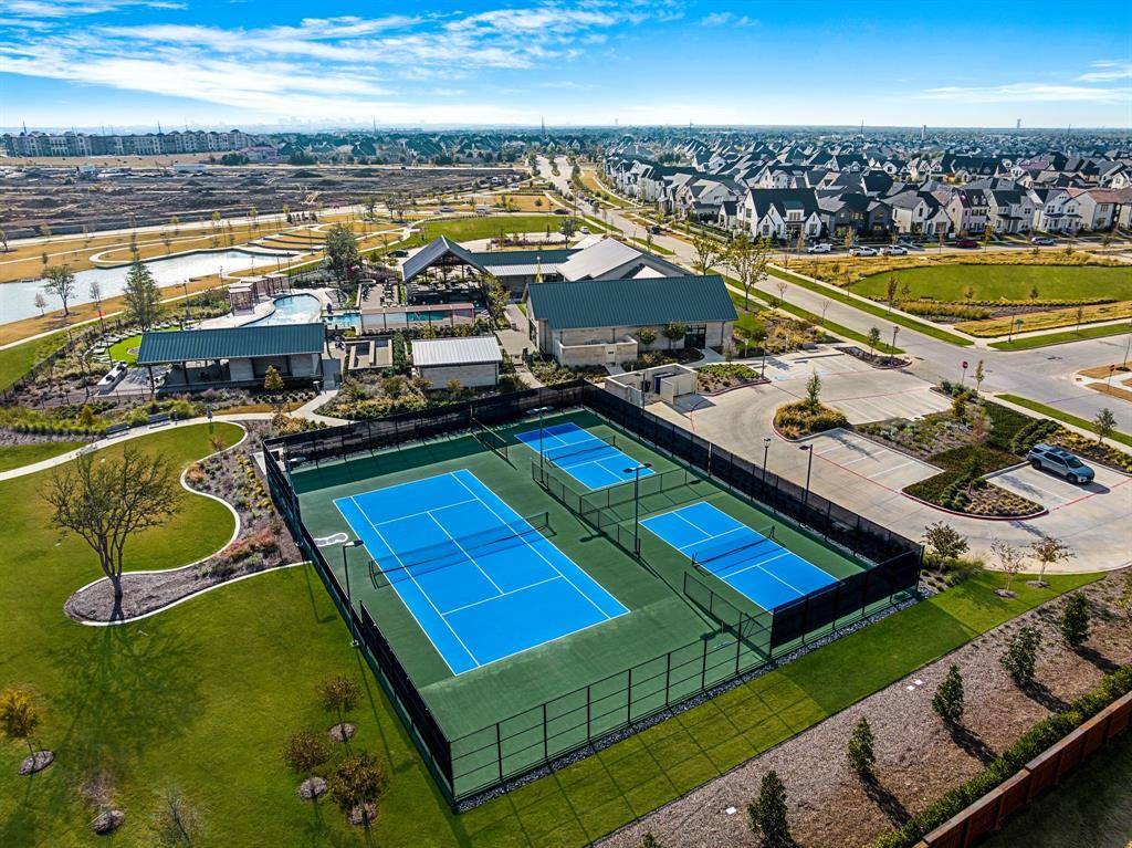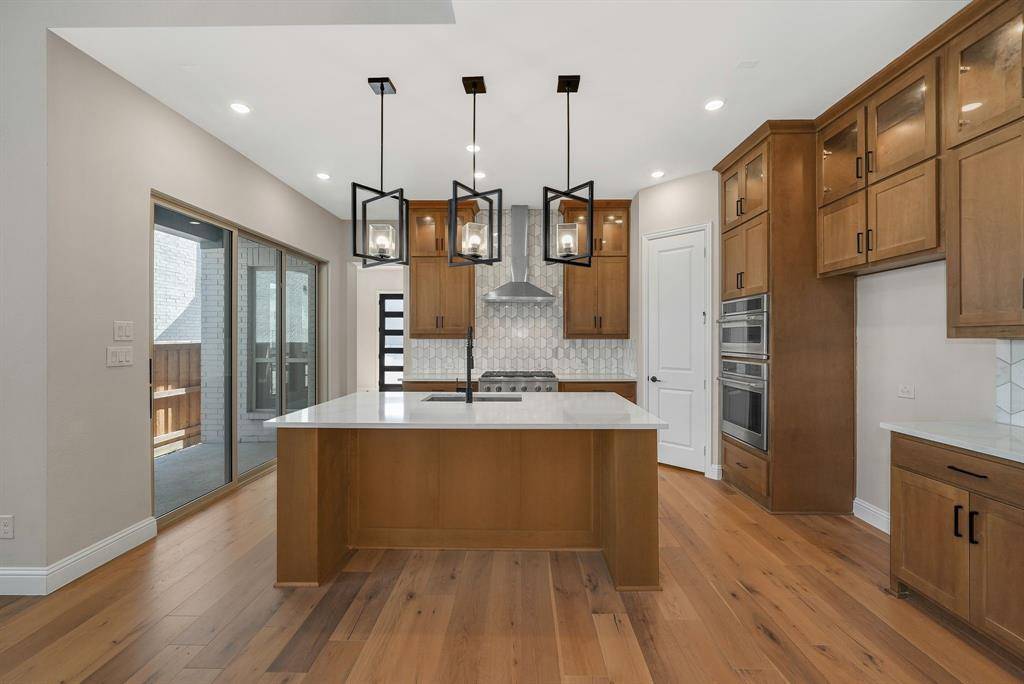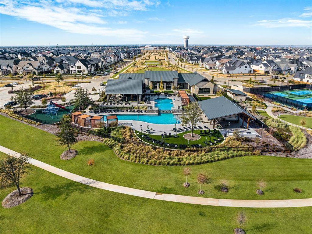 Situated in Frisco's highly desirable Brookside community near the PGA District, this thoughtfully designed two-story home blends timeless style with everyday functionality. A light brick exterior, manicured landscaping, covered front patio, and second-floor balcony create strong curb appeal. Inside, engineered hardwood floors and abundant windows set a warm, inviting tone throughout the main level. The foyer opens to a flexible front bedroom ideal for guests or a home office, conveniently located near a full hall bath with a glass-enclosed walk-in shower. The heart of the home is the chef's kitchen, featuring quartz countertops, a large farmhouse sink, Café gas cooktop, Advantium oven and microwave, tile backsplash, and a large island with breakfast bar. A walk-in pantry and generous cabinetry provide ample storage. The kitchen flows seamlessly into the breakfast nook and spacious living area, highlighted by soaring ceilings, abundant natural light, and views of the side yard. A sliding glass door leads to a covered patio and fenced grassy side yard with gated access. A built-in mud area with storage connects to the rear-entry 2 car garage with additional under-stair storage. Upstairs, carpeted living spaces include an open game room overlooking the main living area, two secondary bedrooms with walk-in closets, and a full hall bath with a tiled tub-shower combination. The utility room offers upper and lower cabinets with a sink for added convenience. The primary suite features a ceiling fan, tranquil views, and direct access to a covered terrace balcony overlooking the front yard. The ensuite bath is designed for relaxation with dual vanities, a spa-style tiled walk-in shower, and expansive his-and-hers walk-in closets with custom storage. Located near the park and just moments from tennis courts, the clubhouse, and the PGA District's premier dining and entertainment, this home offers comfort, flexibility, and an unbeatable Frisco location.