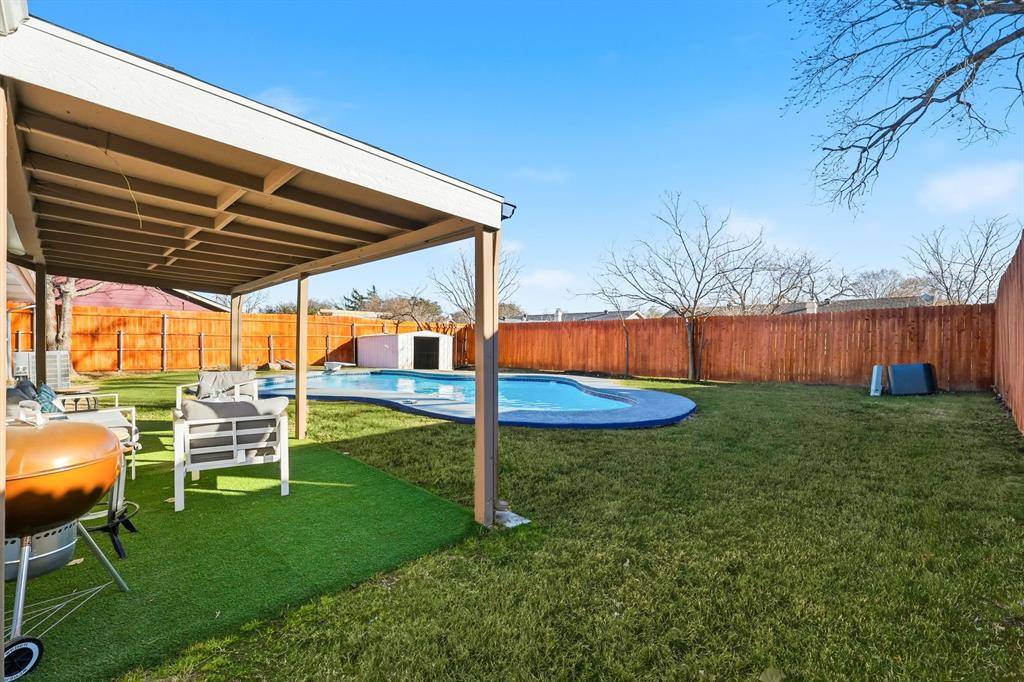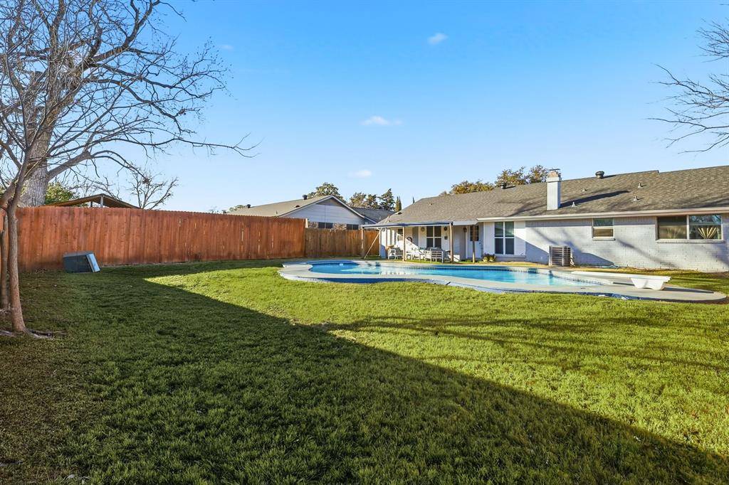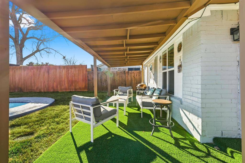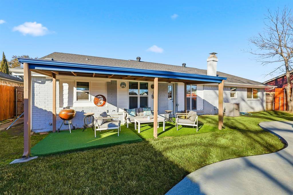 Charming mid-century ranch in Carrollton offering 4 bedrooms and 2 bathrooms in a prime central DFW location. The thoughtfully designed floor plan features an open-concept living area that flows into a bright, updated kitchen with stainless steel appliances and a clean, modern backsplash. New flooring throughout adds a fresh, contemporary feel. The private primary suite includes an en-suite bath, while three additional bedrooms provide flexibility for guests, a home office, or fitness space. Recent updates include a new roof in 2025, new windows and blinds, electrical panel, for added peace of mind. Back door opens to a private backyard with a covered patio - perfect for relaxing or poolside enjoyment. A two-car garage offers ample storage or gym potential. Quiet neighborhood with no HOA, conveniently located near parks, shopping, dining, and all that Carrollton has to offer.