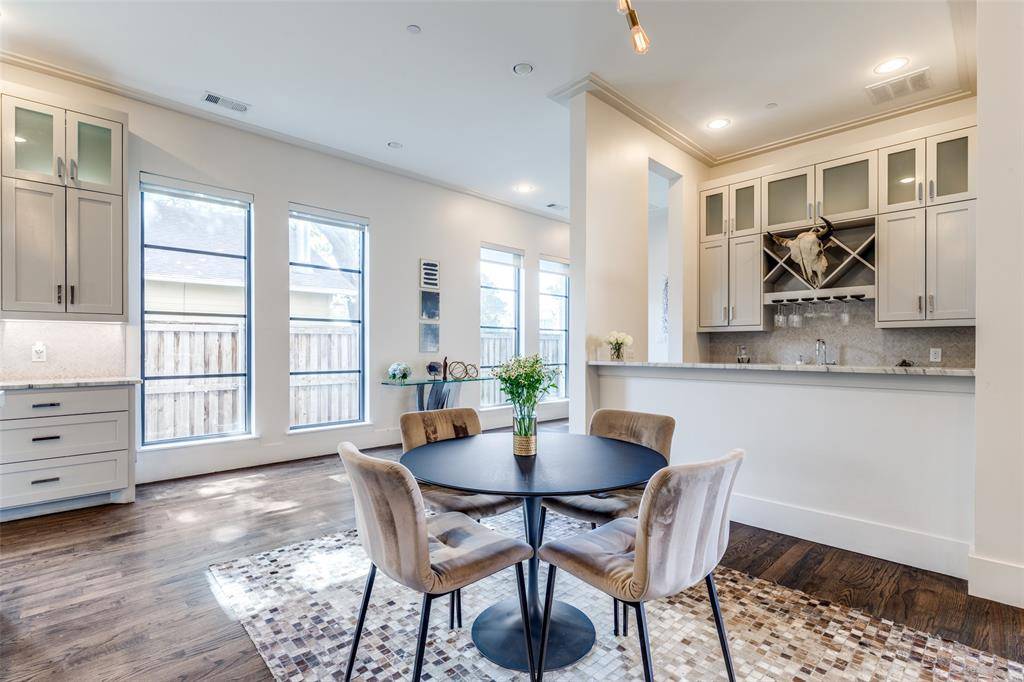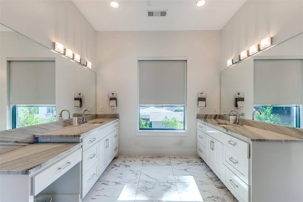 Introducing a stunning modern residence ideally situated just blocks from Dallas Country Club, HP Village, Snider Plaza, and the highly regarded schools including Armstrong Elementary, Highland Park Intermediate and Middle Schools. From the moment you step inside, the expansive living and entertaining spaces speak to a refined yet welcoming lifestyle, with large windows that frame views of the pool, sauna and a Venetian plaster accent wall surrounding the fireplace in the living area. The heart of the home is centered around the chef's kitchen, outfitted with a professional Wolf range, a 48-inch Sub-Zero refrigerator, two Sub-Zero refrigerated drawers, and an approximately 150-bottle Sub-Zero wine cooler—an ensemble that balances performance and sophistication. The home flows gracefully to an elegant office, where soaring 16-foot coffered ceilings and a dramatic 14-foot-high wall of windows bathe the space in natural light. Beyond, an open loft overlooks the first floor, offering both visual connection and a sense of spaciousness. A wet bar, complete with a Scotsman ice maker and Sub-Zero refrigerator, rounds out the living and entertaining experience in style. A first-floor bedroom with en-suite bath offers convenience and privacy, while upstairs, three additional large bedrooms each feature their own luxurious baths. The expansive primary suite is a sanctuary unto itself, boasting a luxury bath and a sprawling 20×19-foot walk-in closet. A wet bar, complete with a Scotsman ice maker and Sub-Zero refrigerator, rounds out the living and entertaining experience in style. Home is also equipped with a whole home Generac Generator.