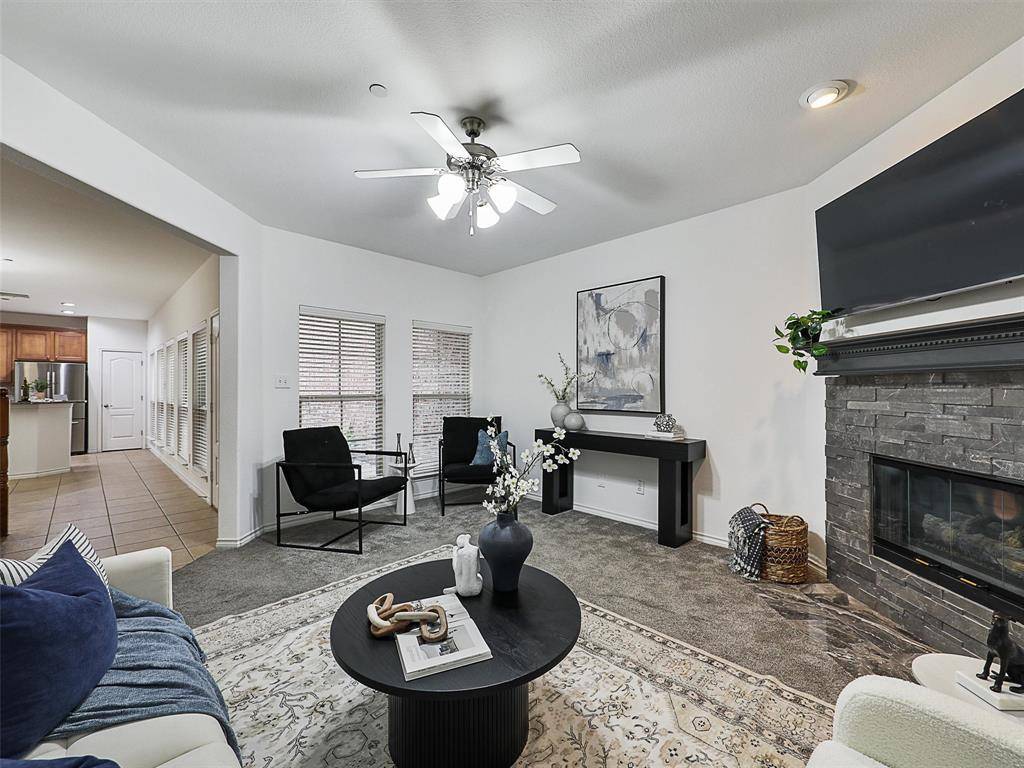 Absolutely charming townhome located in the Star corridor of Frisco! 2 bedrooms, 2.1 baths with courtyard entrance and second floor balcony! Eat in kitchen with granite, pretty wood cabinets, updated backsplash and lighting! Cozy family room with fireplace! Upstairs loft and private primary suite with spacious bath! Recent updates include paint and backsplash! Neighborhood amenities include pool and fitness center! Easy access to tollway, shopping and the Star!