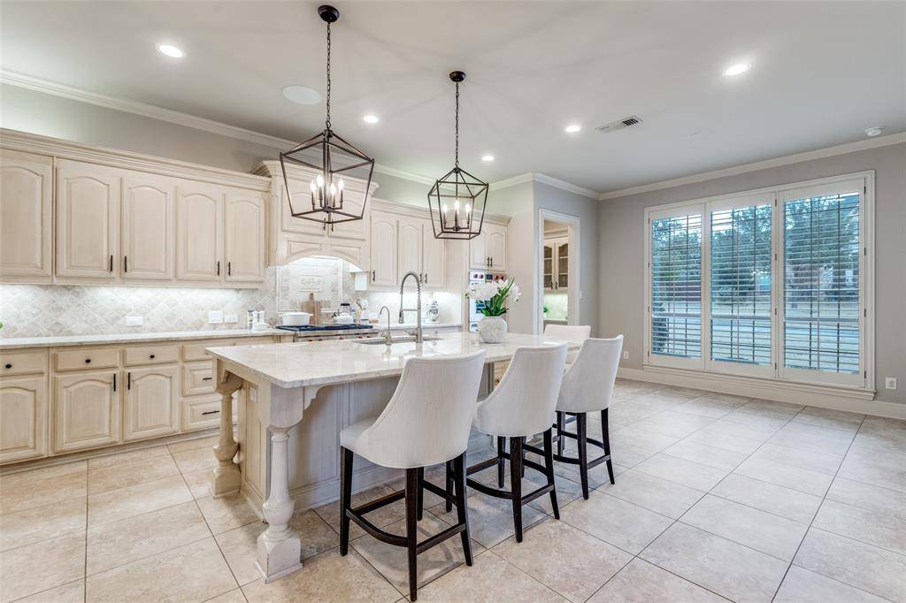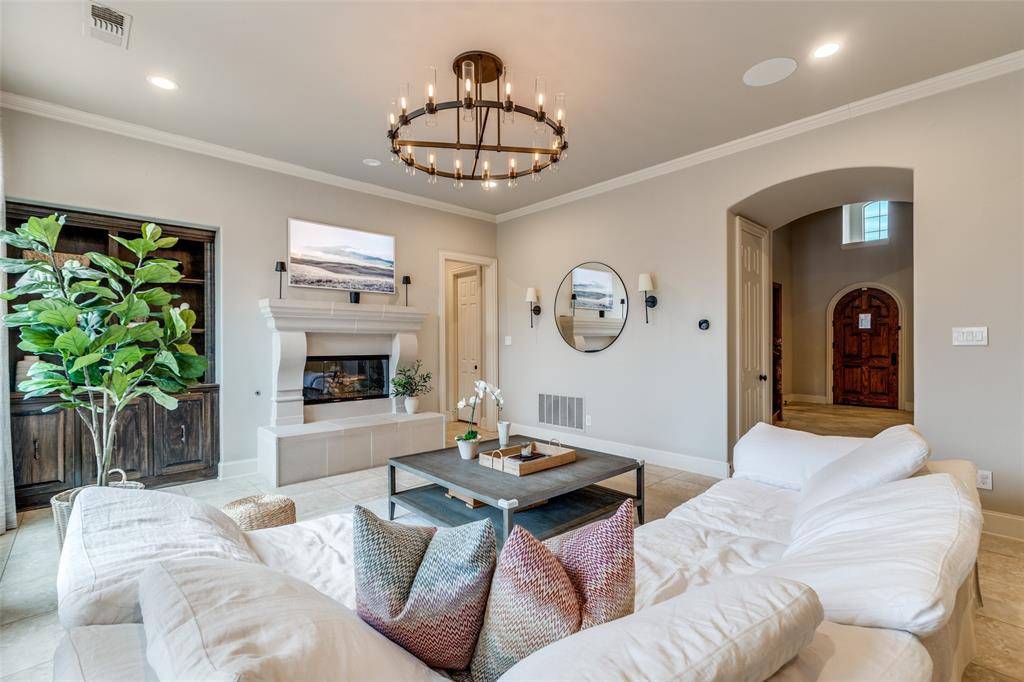 Beautiful Huntington home in much desired Starwood with impeccable finishes and updates throughout. Step inside to soaring ceilings and walls of windows overlooking the resort style backyard with sparkling pool & spa, outdoor grill and extensive seating ideal for outdoor living. A private study features French doors, a coffered ceiling and built in bookcases. Guest bedroom down with ensuite bath. The gourmet kitchen with ample cabinet space, butlers pantry with wine fridge, walk in pantry, built in sub-zero fridge, and high end appliances. Kitchen opens to the inviting family room, with cozy fireplace and windows boasting beautiful backyard views. Private primary suite has sitting area and incredible custom closet. Upstairs a spacious game room and secluded media room off the back staircase. Three additional large bedrooms, each with their own en-suite bath, complete the second floor. A rare 4 car garage not tandem provides exceptional storage. With its prime location and thoughtful updates, this home is the ideal place to enjoy everything Frisco has to offer!