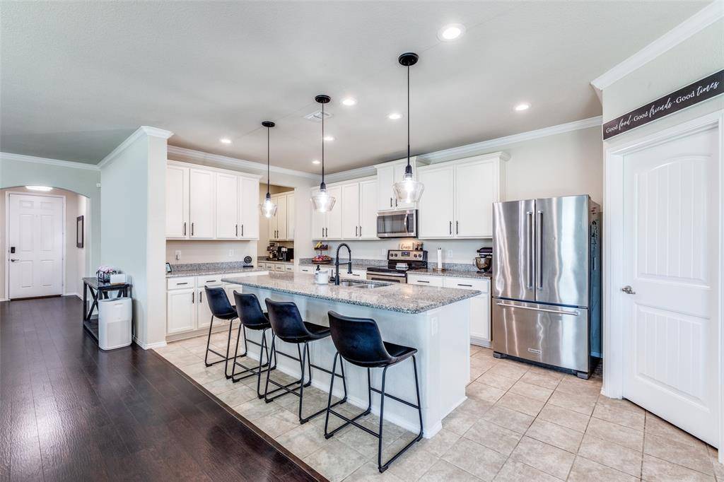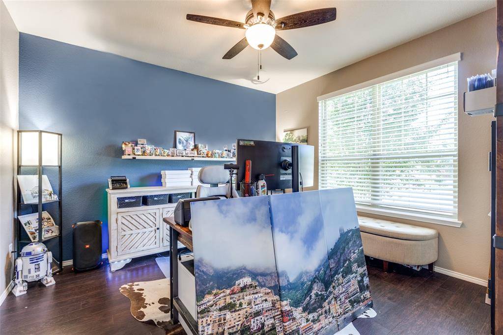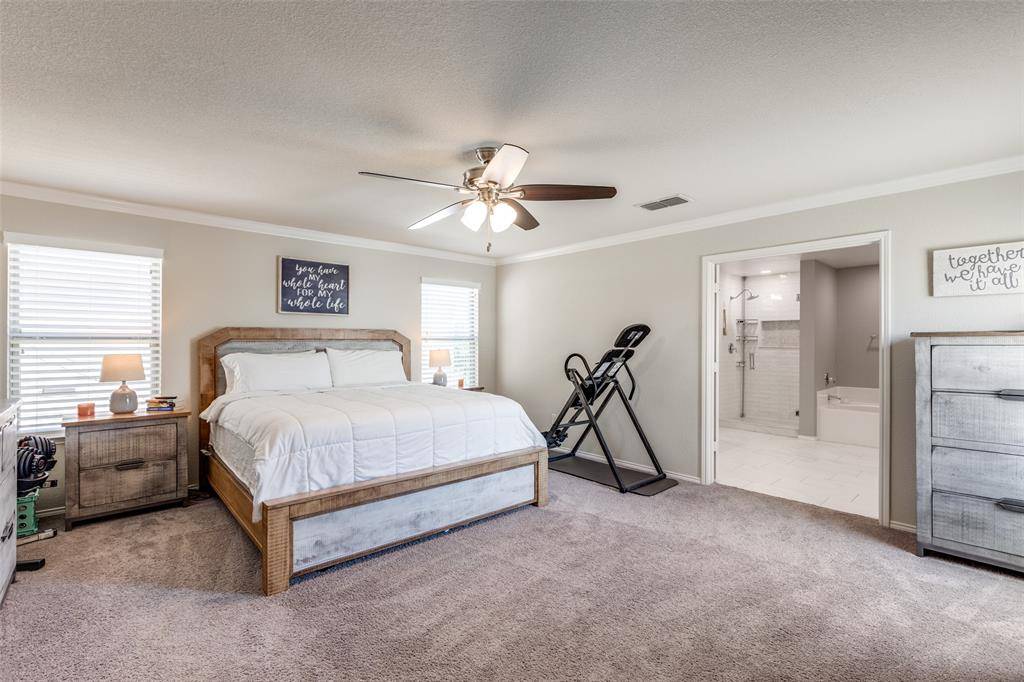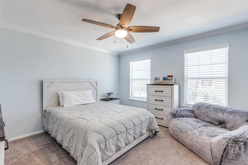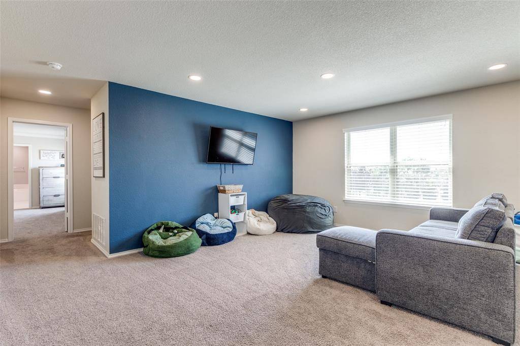 Located on an oversized corner lot in the highly sought after Savannah community and just steps away from one of the neighborhood pools- this beautifully maintained two story home offers thoughtful upgrades and functional living space in one of North Texas' most amenity rich neighborhoods. Warm wood floors run through the study, dining, and main living areas. The kitchen features granite countertops, a spacious pantry, ample prep space, and durable tile flooring that extends into the breakfast nook. The oversized primary suite serves as a true retreat, complete with a recently remodeled spa style bathroom. Upstairs, a versatile second living area functions perfectly as a game room, media space, or additional lounge. Secondary bedrooms are generously sized and filled with natural light. Major updates include a new roof (2024), Brand New Fiberglass Front door with large windows for natural light, upgraded LED lighting with adjustable can lights, ceiling fans in every bedroom, crown molding, and custom board-and-batten accent walls. The backyard has been professionally turfed for low maintenance and pairs beautifully with the extended covered patio and additional concrete perfect for entertaining. *The Current Owner Has Written Approval from the HOA if the new owner would like to change the current fence out, they would allow a wooden fence up to 8 foot high to be installed.** The garage is finished with brand-new epoxy flooring and custom overhead storage.As part of the master planned Savannah community, residents enjoy resort style amenities including multiple pools, a water park, fitness center, tennis courts, lakes, walking trails, and playgrounds.A 3D Matterport tour is available for a complete virtual walkthrough. Some Photos have been virtually altered to show potential.