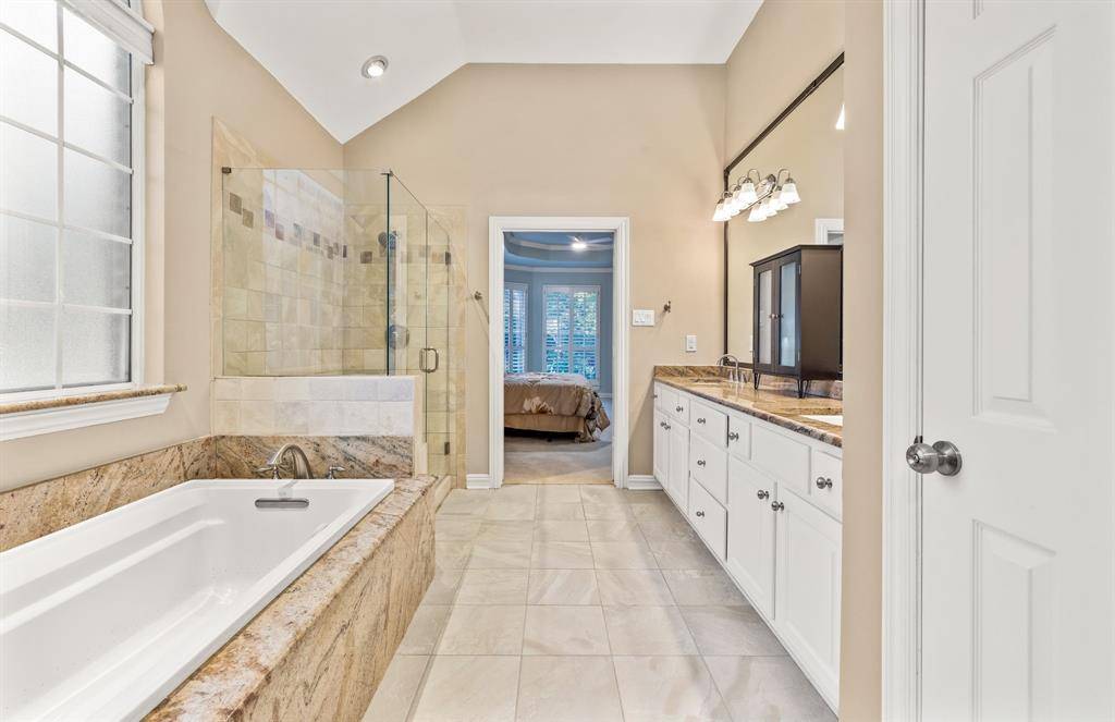 The first floor features inviting formals and a warm family room anchored by a gas fireplace and views of the private backyard. The updated kitchen is designed for everyday living and effortless entertaining with a gas range, double ovens, custom tilework, generous cabinetry, and a walk in pantry. The first floor primary suite feels calm and secluded with a sitting area overlooking the yard, an updated bath with granite counters and a bubble jet tub, and a spacious closet with built ins. Hardwood floors, plantation shutters, and tall ceilings add to the timeless feel.