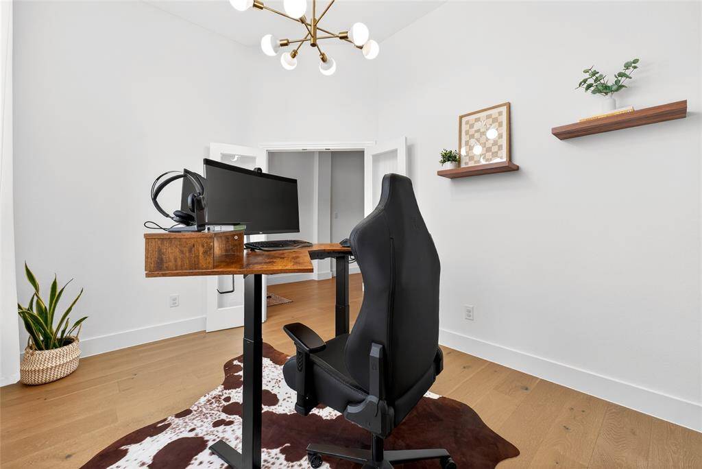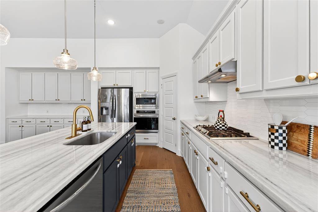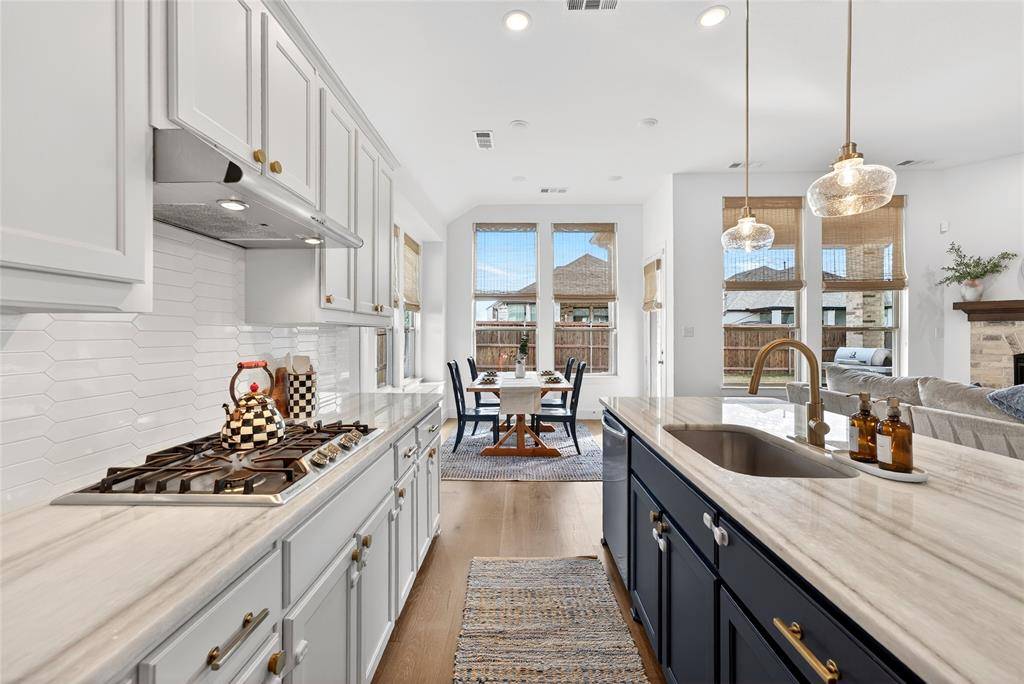 Immaculate single story Highland Home with grand 13ft ceilings and professional accents throughout. Upon entering you'll be greeted by top of the line engineered wood floors that flow throughout the home. The open floor plan is accommodating with split bedrooms, separate office, and 2.1 bathrooms. The living area is wonderful with a spacious feel and feature brick fireplace. The kitchen is wonderfully updated with amazing storage, lovely white cabinetry, stainless steel appliances and quartz countertops. The primary suite is huge and is emphasized with the bay window. The bathroom features double sinks, separate bath and shower and a large walk in closet. In the garage you will find a tankless water heater and water purifying system for top of the line water quality. Outside you can enjoy your private back yard with extended covered patio which is perfect for grilling. The community features a large swimming pool, huge fishing lake and miles of walking and bike trails. Situated a mile from Downtown Celina and the newly renovated Old Celina park you'll have plenty of events to keep you busy. Located just minutes from Preston Road and the Toll road this is an ideal location for anyone with a commute.