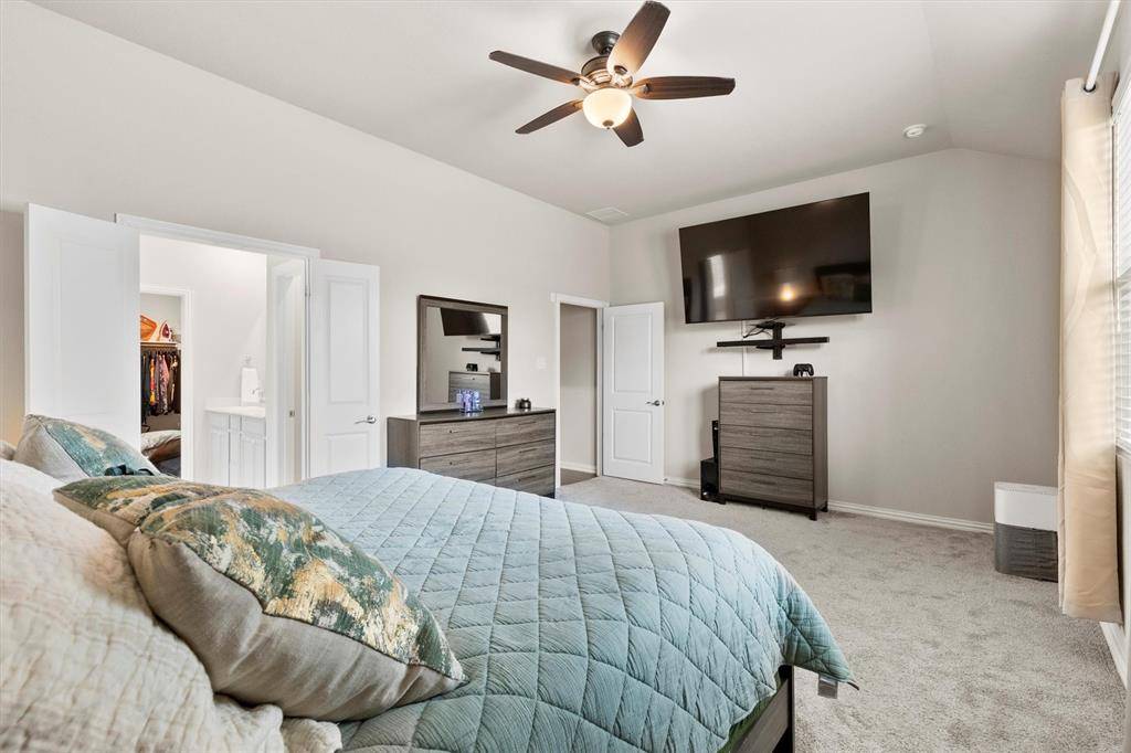 Welcome to this beautifully maintained 5 bedroom home for sale in the highly desirable Arrowbrooke community in Aubrey, Texas. Built in 2021 by Meritage Homes, this home offers modern design, functional space, and quality finishes throughout. With 5 bedrooms, 3 full bathrooms, and 1 half bath, this spacious floor plan is ideal for a variety of living needs. The fifth bedroom is exceptionally large, making it perfect for a teenager's retreat, guest suite, or multi-generational living. The sellers have shelves in this closet to so it could be used as a media room. This could easily be changed. A generous size game room and additional study provide flexible space for entertaining, working from home, or relaxing. Extensive LVP flooring flows through much of the homes first floor, offering durability and wood look style. The primary bedroom offers a private retreat on the first floor with an oversized walk-in closet that provides abundant storage. Additional highlights include a 3 car garage, covered rear patio, and wood fencing. Residents enjoy access to community amenities that include pools, ponds, trails, playground, and greenbelt areas. Make plans to see this house today!