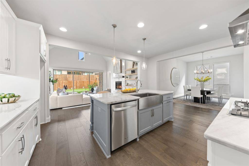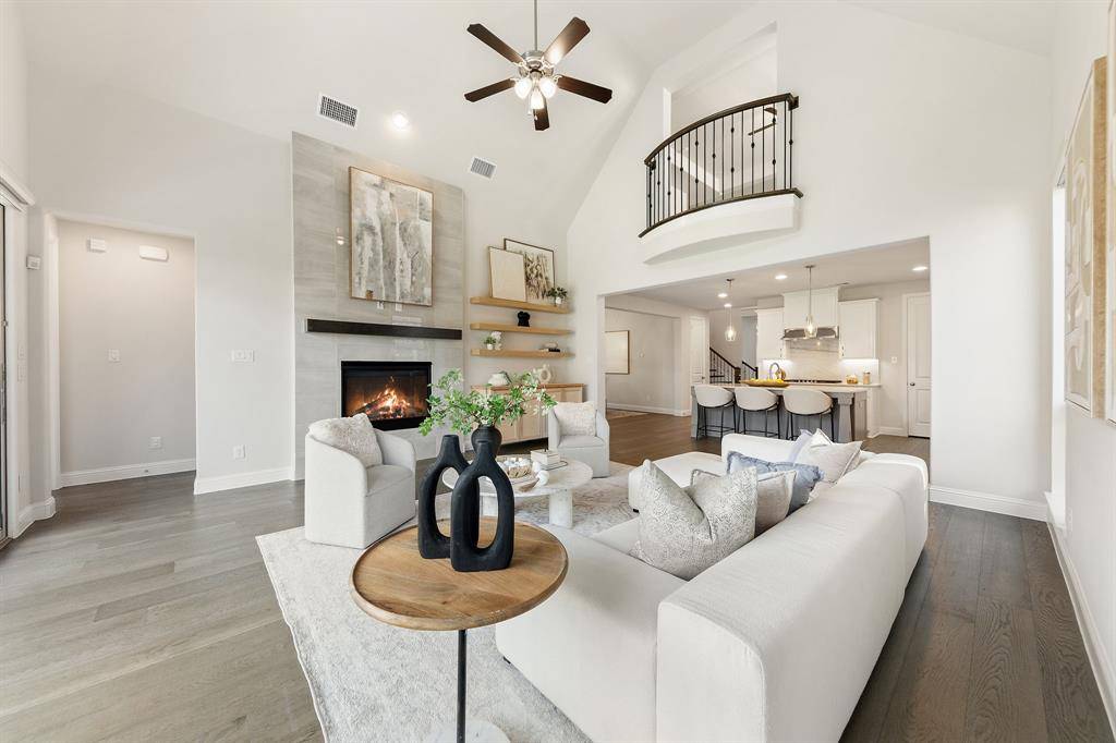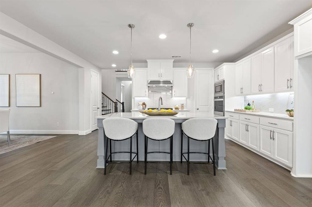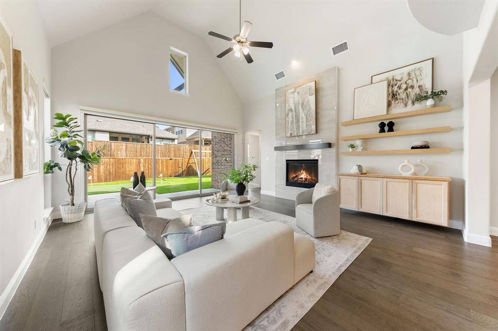 Designed for modern living, the home is fully hardwired with CAT6 internet for reliable high-speed connectivity. Automatic shades throughout the home can be scheduled for daily opening and closing, adding both convenience and energy efficiency. A dedicated media room is pre-wired for surround sound, perfect for movie nights or game days. The open kitchen and living areas flow seamlessly for both entertaining and everyday comfort.