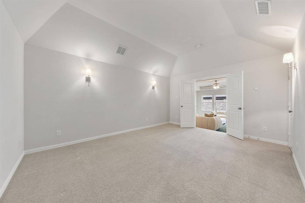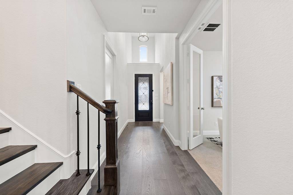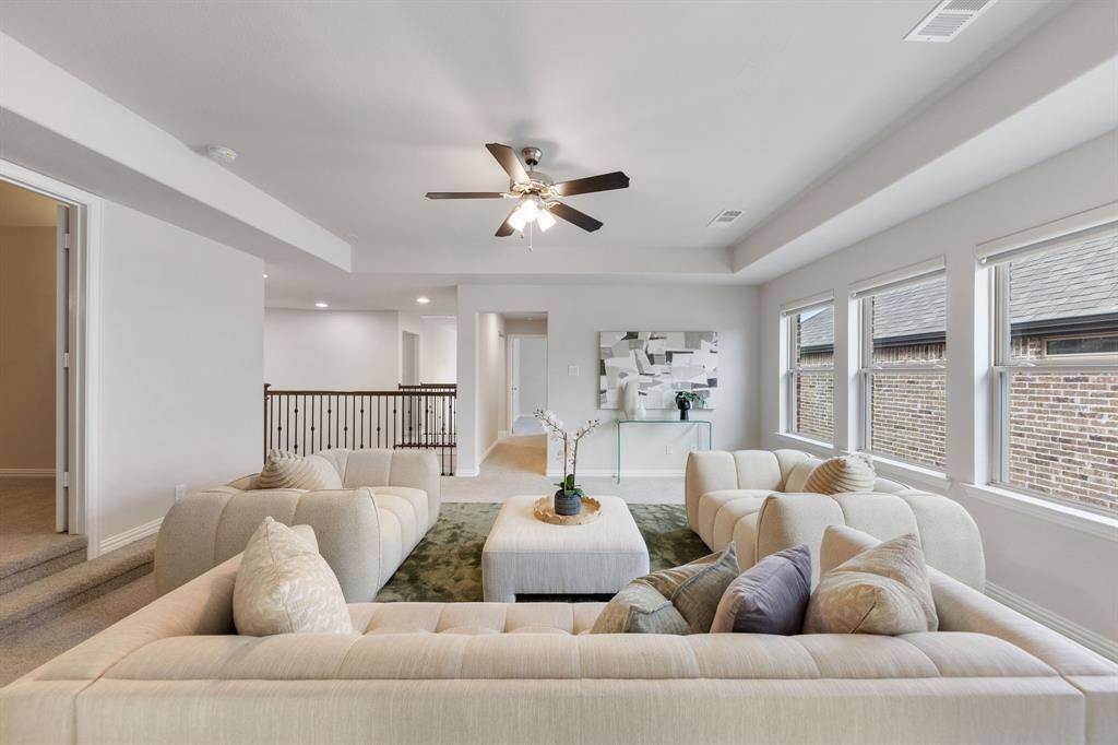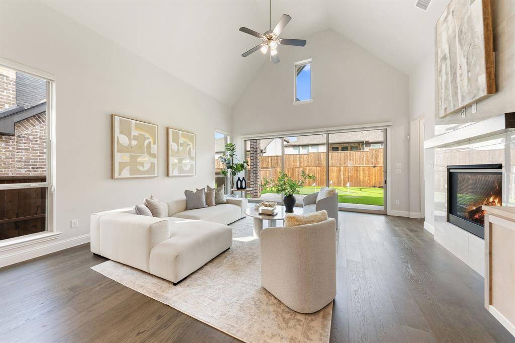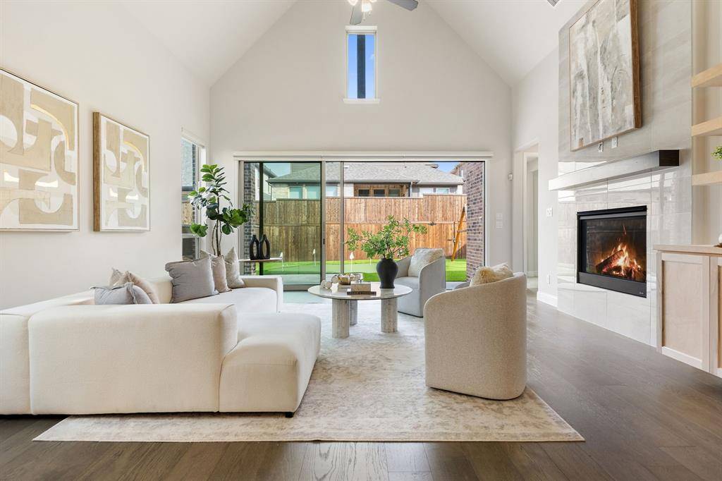 Designed for modern living, the home is fully hardwired with CAT6 internet for reliable high-speed connectivity. Automatic shades throughout the home can be scheduled for daily opening and closing, adding both convenience and energy efficiency. A dedicated media room is pre-wired for surround sound, perfect for movie nights or game days. The open kitchen and living areas flow seamlessly for both entertaining and everyday comfort.