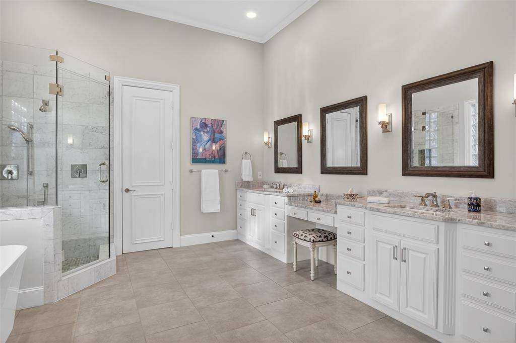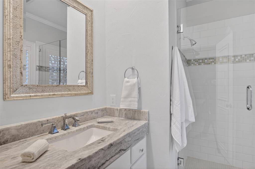 The remodeled primary bath offers a luxurious escape, while the remaining full baths have also been updated. A steam shower in the downstairs secondary bath adds a spa-like touch. Additional highlights include: Gorgeous hardwood floors. Plantation shutters. Temperature-controlled wine closet. Whole-home and exterior sound wiring. Three-car garage and much more.