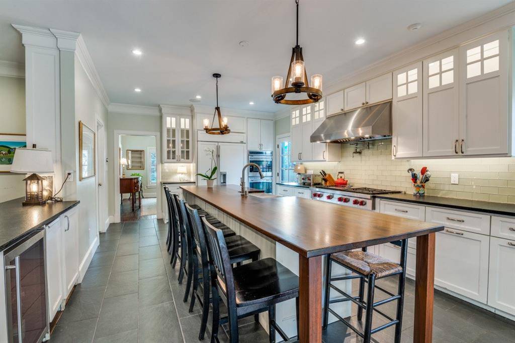 Charming Spanish-Mediterranean–inspired home in a prime location, blending timeless character with modern comfort. The main level offers three spacious living areas, a formal dining room, and a convenient powder bath. An expansive chef's kitchen featuring premium Wolf appliances flows seamlessly into a warm and inviting den—perfect for everyday living and entertaining. Upstairs, you'll find all four bedrooms and three full baths, including a generously sized primary suite. Step outside to an exceptional outdoor living space complete with a fireplace and built-in pizza oven—ideal for gatherings year-round. A private guest suite above the detached garage, with approximately 700 SQFT, provides flexible space for visitors, a home office, or studio. Additional highlights include hand-scraped wood floors, custom built-ins, and thoughtful architectural details throughout.