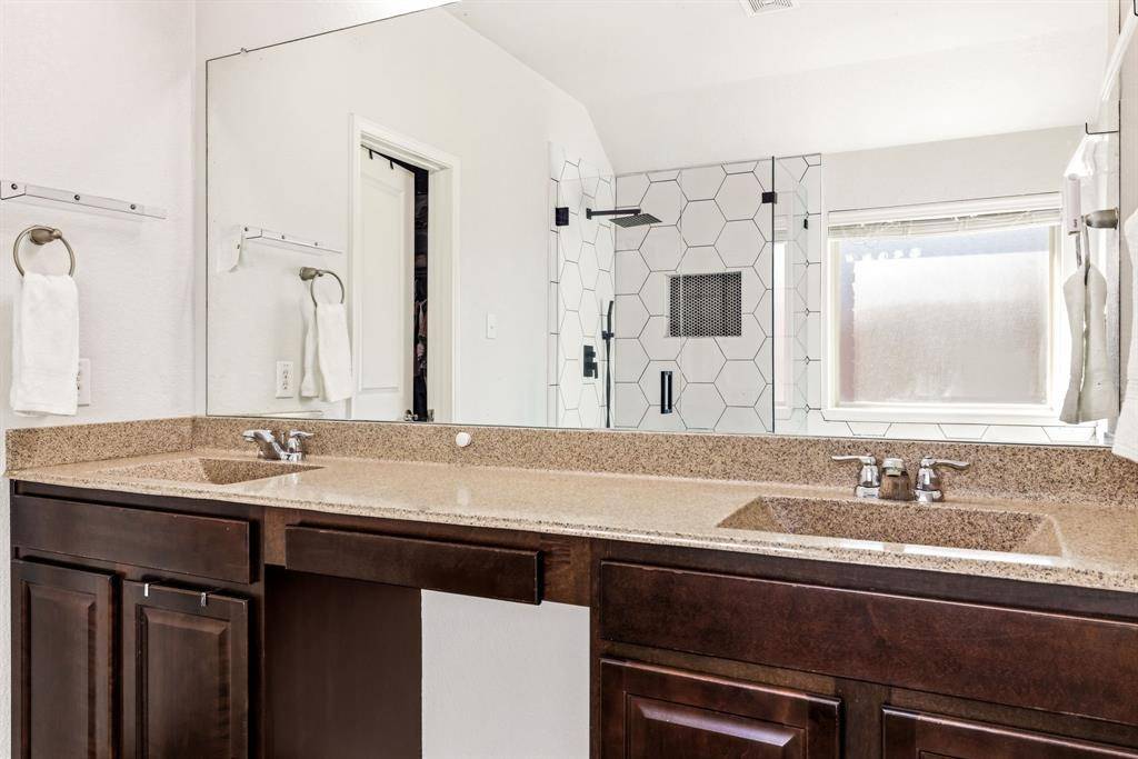 The primary suite is a true retreat, boasting an oversized bedroom with not one but *two* walk-in closets, ensuring ample space for all your needs. The en-suite bathroom has been upgraded with a luxurious oversized shower, perfect for unwinding after a long day.