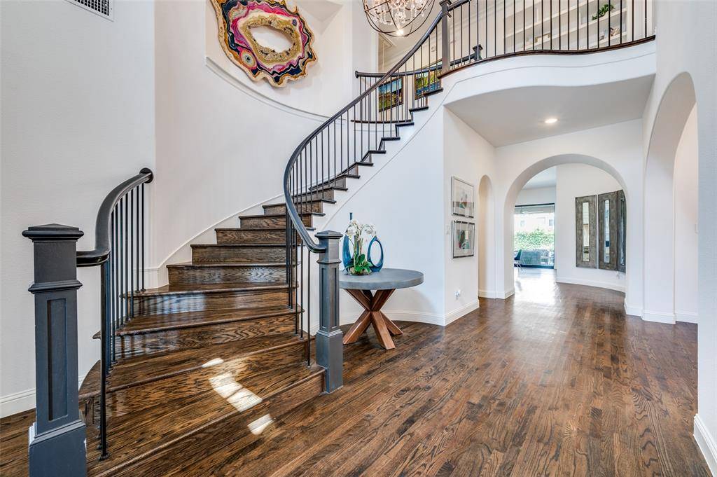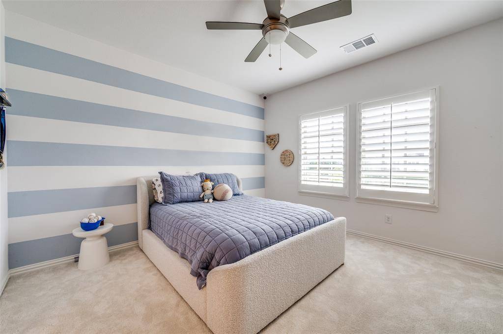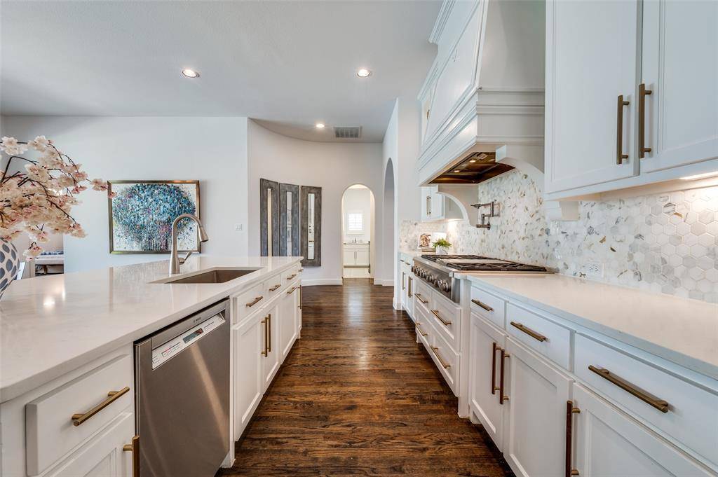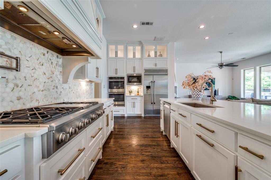 Enter through a grand two-story foyer leading to a private study, formal dining, and an open-concept kitchen and living area. Solid wood floors throughout! The open, airy layout is filled with natural light. The gourmet kitchen features floor-to-ceiling cabinets, an undermount farm sink, oversized quartz island with seating, brand new GE Monogram built in refrigerator. Monogram appliances, double ovens, 6-burner gas stove with pot filler and hood, dishwasher, and walk-in pantry. This space is an entertainer's dream with expansive living area, large windows, and cozy gas log fireplace. The main floor includes a luxurious primary suite with custom wall treatments and lighting. The spa-like bath offers dual vanities, walk-in shower, soaking tub, and dual closets—one connected to the laundry room with sink and ample storage. A secondary bedroom with en-suite bath is also located downstairs. Upstairs: 3 additional bdrms with en-suites & walk-in closets, plus a game room with floating cabinet & a media room. New carpet throughout the second floor! Step through custom sliding doors to your backyard oasis—an extended patio w dual fans & outdoor kitchen featuring a Green Egg & new fridge. Enjoy your glass-tiled pool, oversized spa, sun deck, & resort-style living without leaving home. Unwind in the sunken lounge w built-in fire pit, then hit the Sport Court for basketball. The yard features turf around the pool, a grassy area for pets, New landscaping, including beautiful magnolia trees growing up to 60 feet tall! Enjoy mornings on your front porch bed swing with coffee or evenings with wine. Also includes a spacious mudroom & 3-car tandem garage with EV charging.