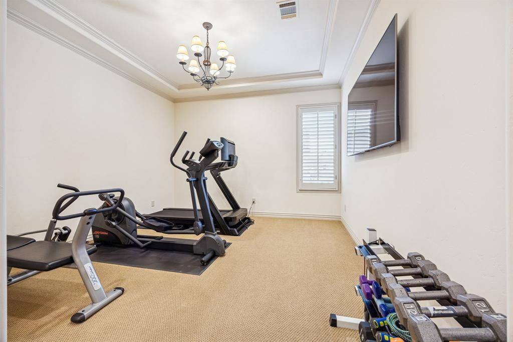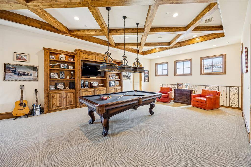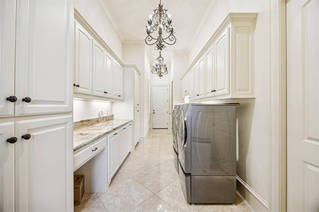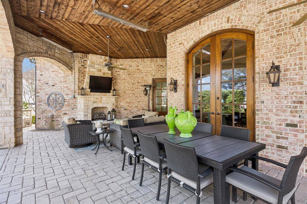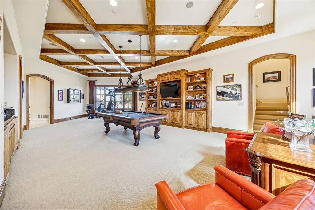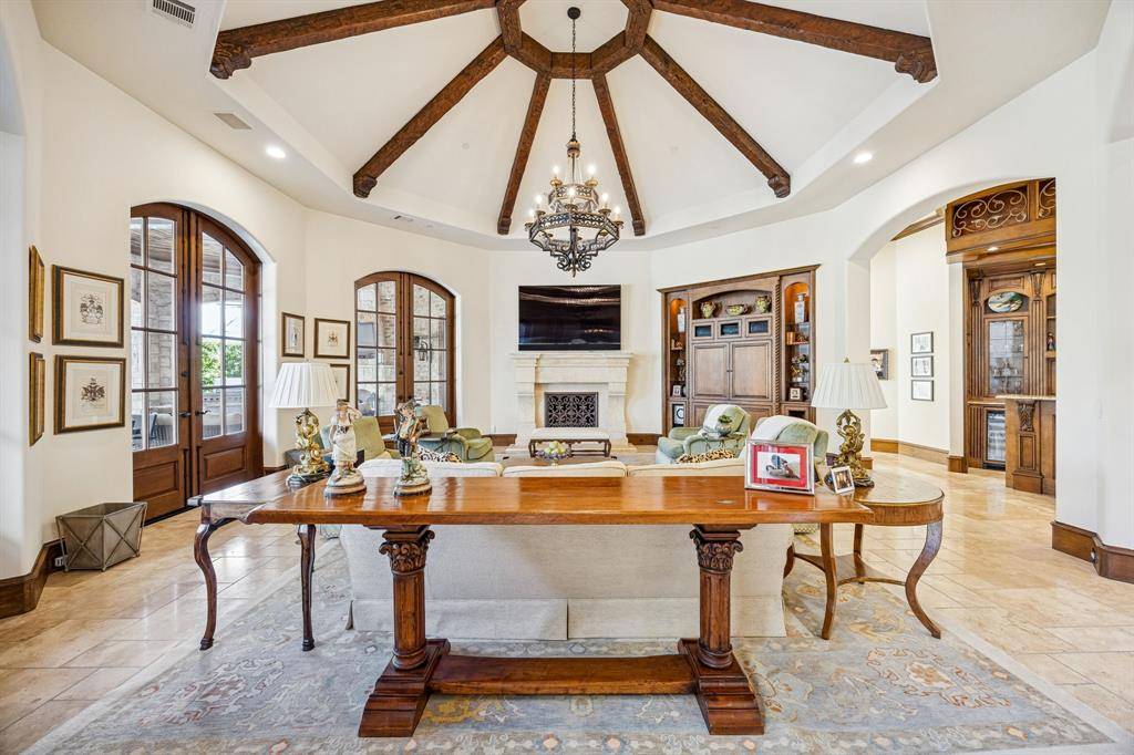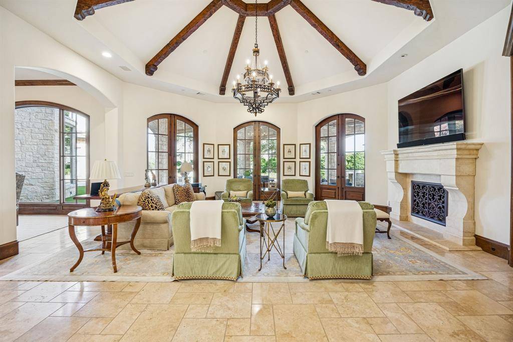 Welcome to this Masterfully inspired French Estate meticulously crafted situated in the prominent sought Starwood neighborhood of Frisco. Positioned beautifully on over half acre, this 8134 SF residence stands as a testament to master craftsmanship, timeless design, & refined sophistication. Interiors designed by Cheryl Van Duyne, built by Steve Roberts, a thoughtful layout designed for both grand entertaining & everyday comfort. Exquisite architectural detail throughout with hand hewn beamed & groin vault ceilings. Custom wood work & intricate crown molding create a classic European atmosphere. This extraordinarily graceful home is surrounded by beauty at every turn. Every room exudes European elegance; every aspect reflects a remarkable commitment to luxury, comfort, craftsmanship & grand-scale entertaining. It is much more than a home: It is a private retreat for those who seek timeless beauty. The homes interior features both matte & gleaming glossed walls. The main level offers a grand foyer with soaring vaulted ceilings & magnificent ceiling light fixtures. The sophisticated foyer features a sweeping staircase adorned with gold leaf detail, custom wainscoting, designer light fixtures, cast stone fireplace.