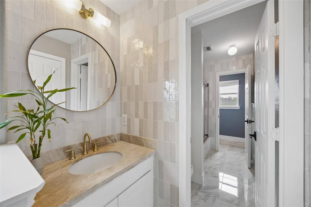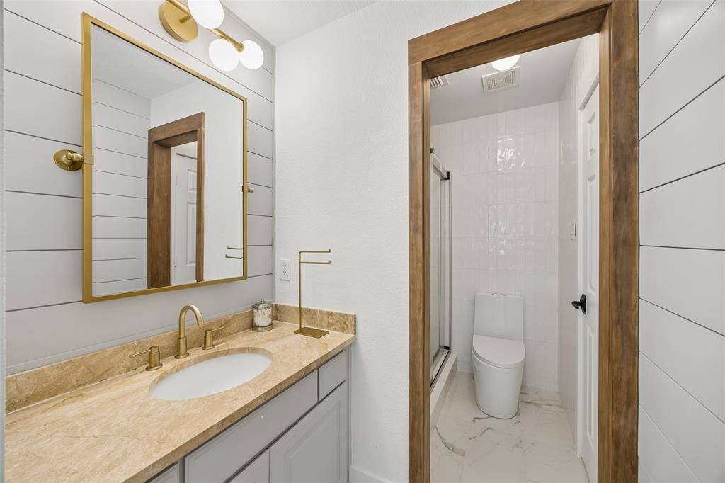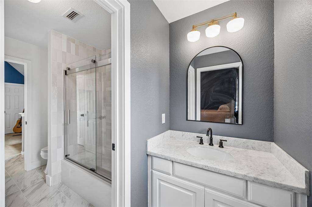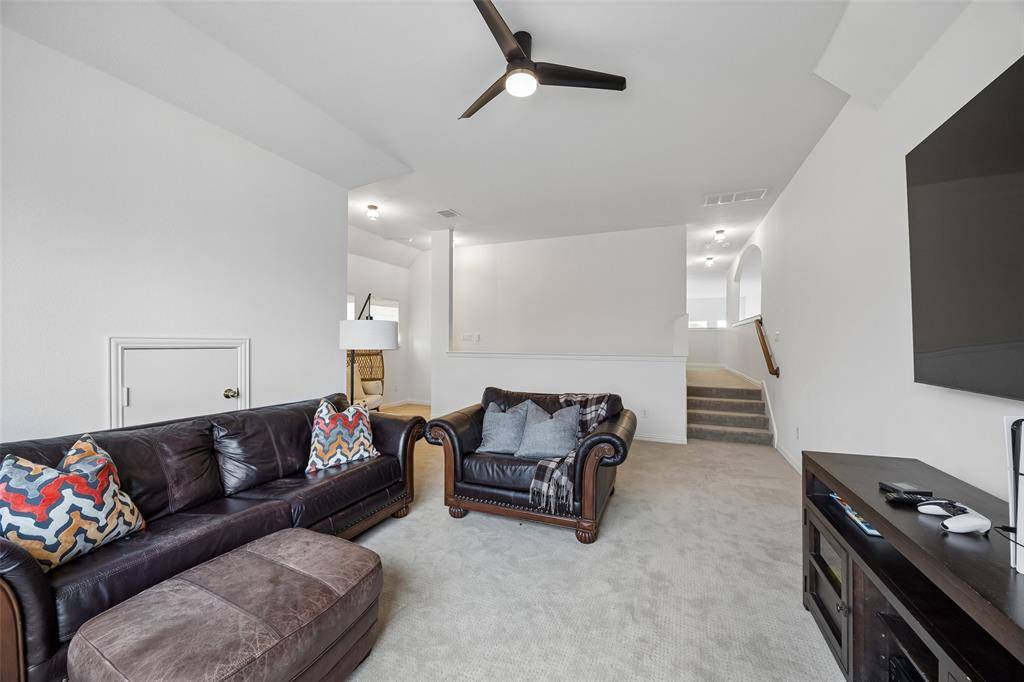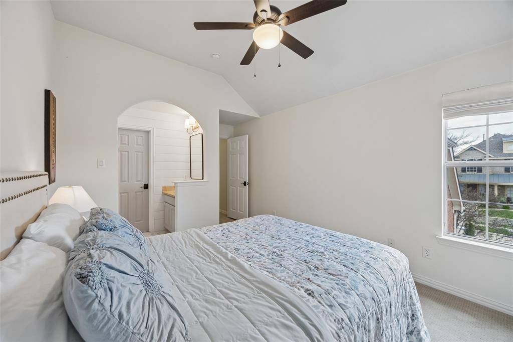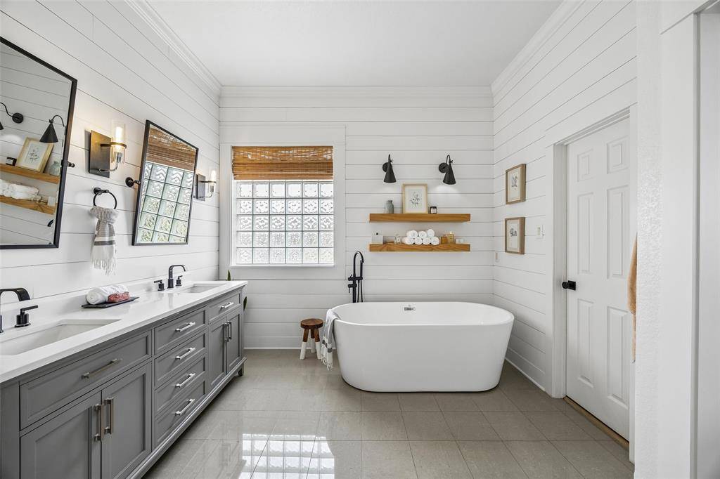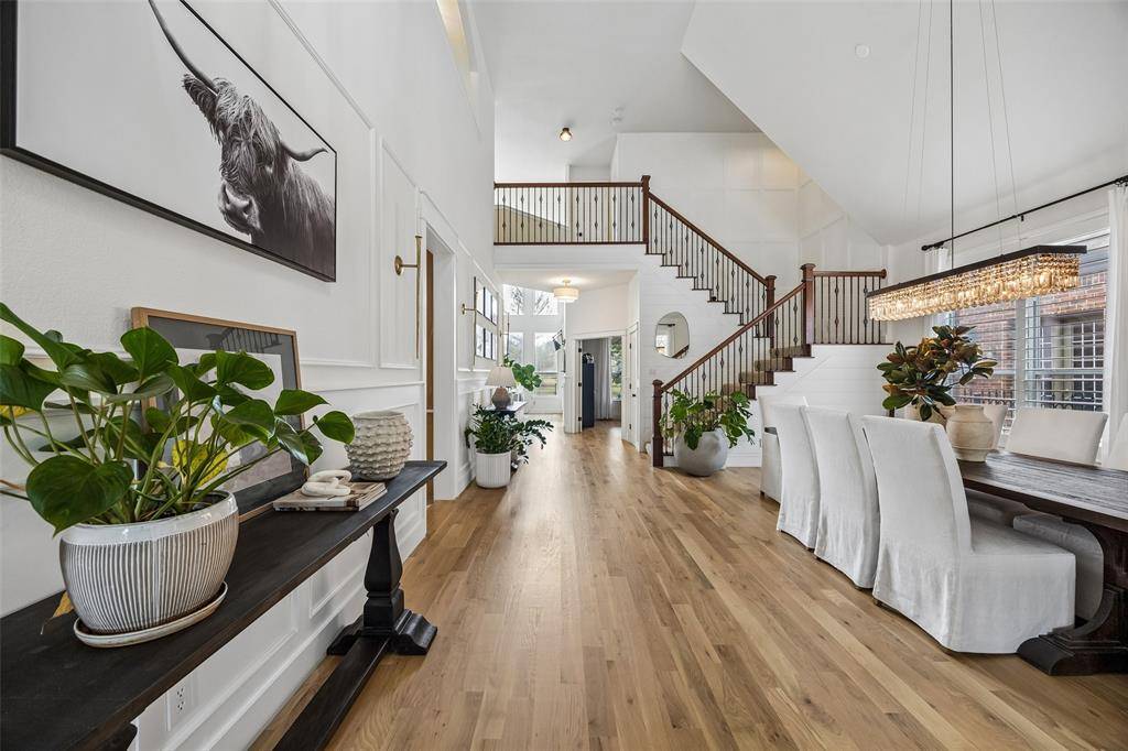 Perfectly positioned on a quiet cul-de-sac beside a greenbelt and lake, this beautifully updated home offers privacy, scenic views, and refined design throughout. With no neighbors on the east or south sides of the property and a large lot, the setting feels both peaceful and private. You are greeted by modern elegance and thoughtful designer touches the moment you enter. Tall ceilings, wainscoting, custom lighting, and new white oak hardwood flooring throughout the first floor create a warm yet sophisticated atmosphere. The welcoming living room features a stately fireplace and dramatic floor-to-ceiling windows that frame breathtaking lake views while filling the home with natural light. Designed for both daily living and entertaining, the open floor plan flows seamlessly into the stunning eat-in kitchen. A true chef's dream, the kitchen showcases quartz countertops, new appliances, beautiful white oak cabinetry, designer lighting, a breakfast nook, and abundant storage. The first-floor primary suite offers a peaceful retreat with a bay window and comfortable seating area overlooking the backyard. The spa-like ensuite bath features dual sinks, a separate shower, a large soaking tub, and a spacious walk-in closet. An elegant formal dining room and dedicated home office complete the main level. Upstairs, spacious secondary bedrooms and baths are complemented by a large family room providing flexible living space. Enjoy the serene backyard and gorgeous lake views—an ideal setting for relaxing evenings or entertaining guests. Additional highlights include a three-car garage, large bedrooms, custom bathrooms, and extensive upgrades throughout. Exceptional community amenities including a guarded front entrance, a 9-hole golf course, fitness center, two pools- one with a lazy river, community clubhouse, and fishing lakes. This home combines luxury living, stunning views, and resort-style amenities in one exceptional property.