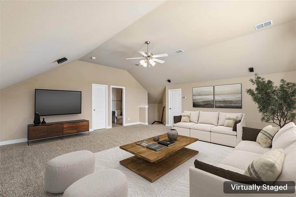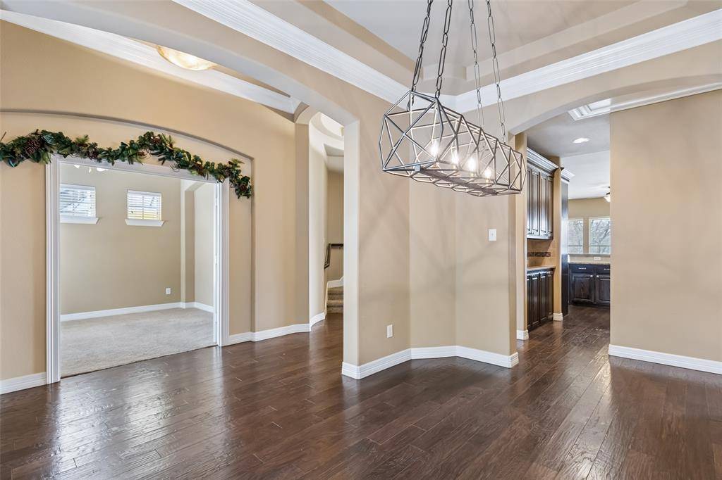 Perfectly positioned on a rare greenbelt creek lot in the highly sought-after The Trails of West Frisco, this dynamically immaculate 4-bedroom, 3-bath home offers exceptional space, thoughtful design, and a location that is hard to match. Backing to serene greenbelt views, the setting provides both privacy and a beautiful natural backdrop. Inside, the spacious open floor plan is filled with architectural character, featuring eye-catching angles, graceful arches, and abundant hardwood flooring throughout much of the home. The main living areas flow seamlessly together, creating an inviting environment ideal for both everyday living and entertaining. Just off the entry, a private office-study with French doors provides the perfect space for working from home or quiet reading. The kitchen and living areas open to views of the backyard and greenbelt, allowing natural light to fill the home. Upstairs, a Texas-sized game room delivers incredible flexibility for recreation, media, or gathering space, and is complemented by a full bath—making the upper level ideal for guests or extended living. Residents of The Trails of West Frisco enjoy miles of scenic walking trails, two neighborhood elementary schools, two community pools, and tennis courts—creating an active and connected lifestyle. The home is also located just minutes from the world-class PGA of America Headquarters, bringing premier golf, dining, and entertainment within easy reach. A rare opportunity to enjoy greenbelt living, generous space, and one of Frisco's most desirable communities. 3D tour online!