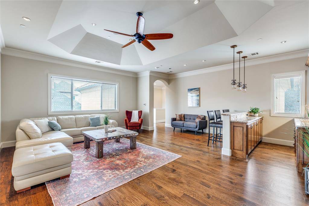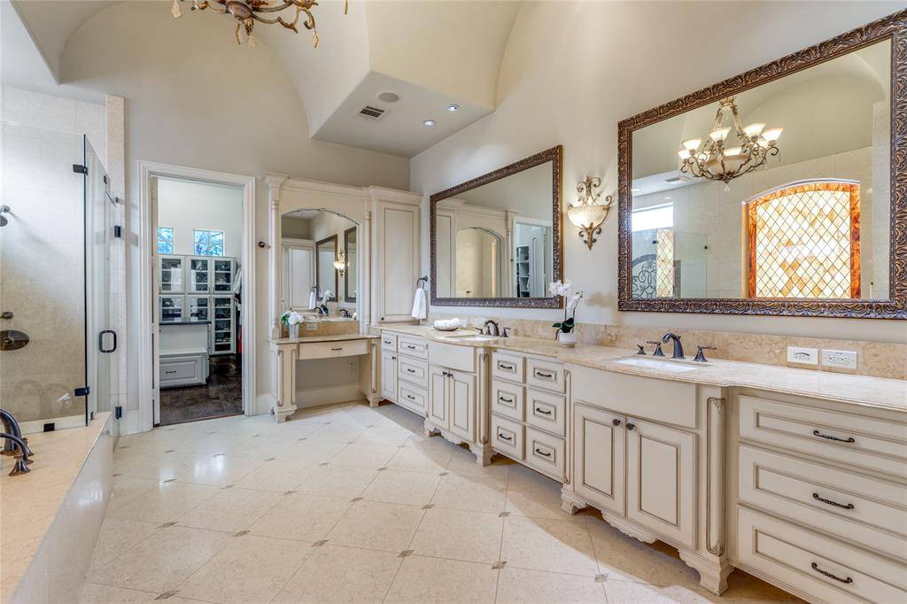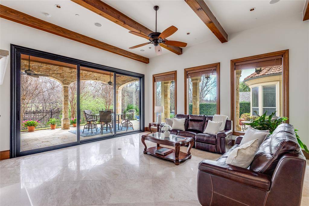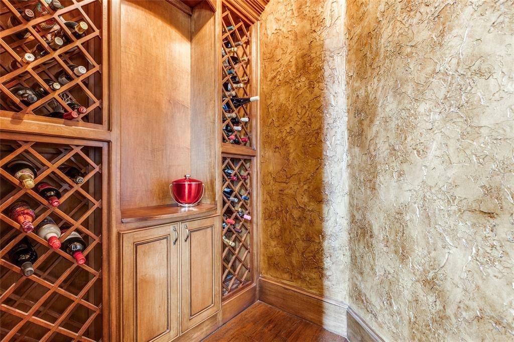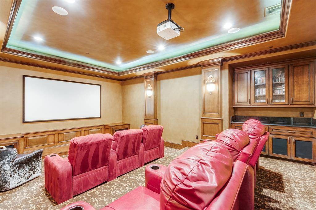 From the grand entry, you're immediately drawn to walls of windows that frame the resort-style backyard. Designed for both relaxation & entertainment, the outdoor oasis features a sparkling pool & spa, a spacious covered veranda w fireplace, electric remote screen, a convenient outdoor pool bath, all surrounded by lush landscaping for complete seclusion. The elegant formal living rm offers a fireplace & serene backyard views, while the formal dining rm is complemented by an impressive wine room. A private study w built-ins & French doors opens to the front of the home, creating the perfect work-from-home space. The guest suite is conveniently located on the main floor & features its own ensuite bath. The chef's kitchen is a showpiece, highlighted by a large island, high-end appliances, & a built-in Sub Zero refrigerator. It opens seamlessly to the spacious family rm w striking wood-beamed ceilings, a fireplace, and walls of windows overlooking the backyard retreat. The expansive primary suite is also located on the main level & opens to the backyard, offering a luxurious bath & an oversized walk-in closet w custom furniture-style cabinetry. Upstairs you'll find a media rm, a large game rm w walk-in wet bar, & a versatile bonus rm perfect for a second office or workout space. Three generously sized bedrms complete the upper level. Additional highlights include three tankless water heaters, a powerful 26k Generac whole-house WiFi-enabled natural gas generator, overhead garage storage, security cameras, security lighting, outdoor recessed decorative lighting & spotlights, & an expansive porte-cochere w large driveway. The home is also Green Built certified & designed for exceptional energy efficiency.