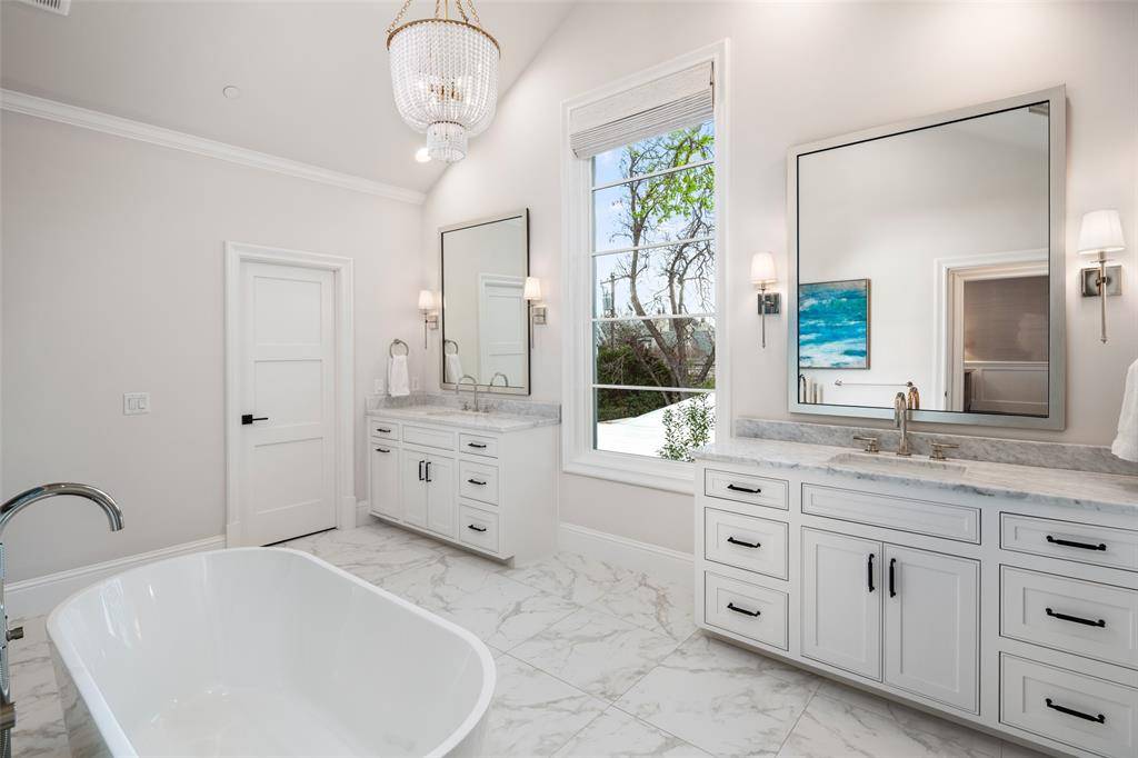 Built by Craft Barnett in 2020 and enhanced since completion, this striking transitional residence in University Park offers timeless architecture, abundant natural light, and carefully curated upgrades to create an exceptional living experience. Custom iron front doors open to a welcoming foyer, flanked by an elegant dining room and bright sitting area. A grand central living space is anchored by the fireplace, while windows frame the space with natural light. The chef's kitchen showcases a Wolf Range with six burners and infrared griddle, Wolf warming drawer, two Asko dishwashers, Sub-Zero refrigerator, oversized pantry, and butler's pantry. Sliding doors extend the living space outdoors to a backyard retreat centered by a custom Hobert pool, turf lawn, and covered patio for alfresco dining. Landscaping highlights the stucco-finished exterior with front yard illumination and subtle uplighting, creating evening ambiance. A generous guest suite completes the first floor. Two staircases and an elevator lead to the second level, where the expansive primary suite, privately tucked away, features vaulted ceilings, designer wall coverings, detailed millwork, and spa-inspired bath with Carrera marble and luxurious heated floors. This level also hosts four additional bedroom ensuites with walk-in closets. A spacious recreation room can easily serve as media room or additional living space. Throughout the home, hardwood floors, motorized shades and drapery, elevated lighting, whole-house water softener, and customized Stanton rugs reflect the owners' attention to detail and commitment to luxury. Beautifully maintained and thoughtfully enhanced, this home offers refined living with seamless indoor-outdoor flow, nestled in one of Dallas' most desirable neighborhoods. Within the prestigious University Heights enclave of the Park Cities, this home combines serene, tree-lined streets and strong community with easy access to local fine dining, shopping and HPISD.