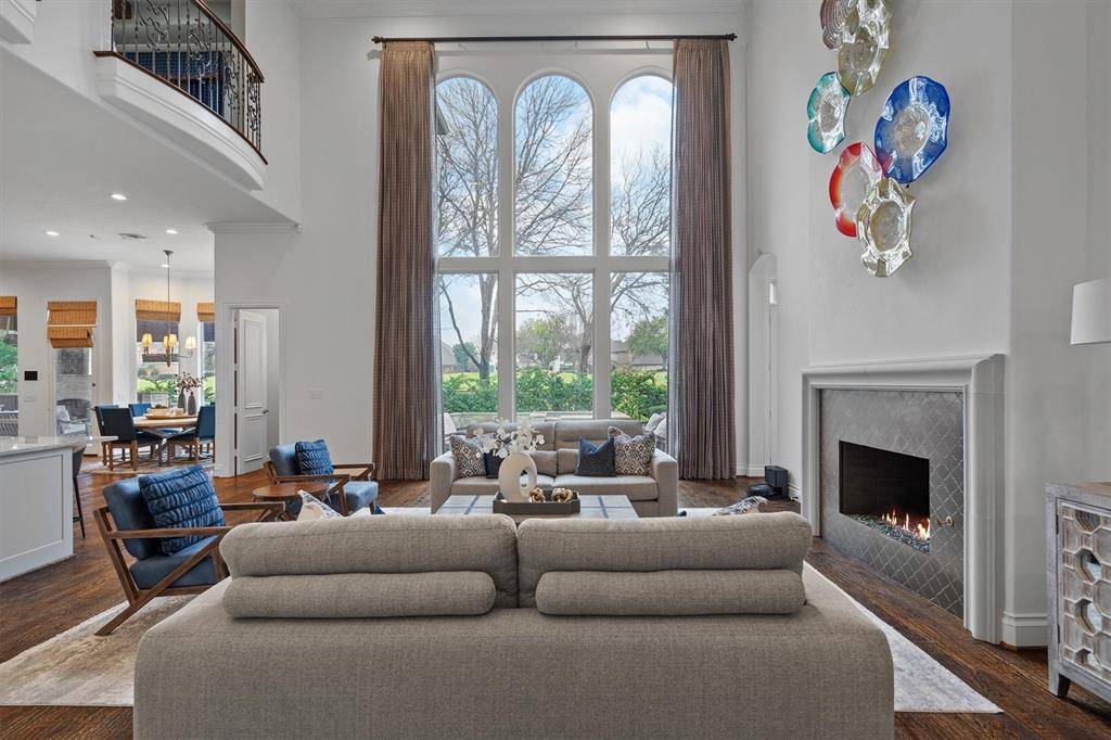 GOLF COURSE VIEWS! Perfectly positioned along the golf course in Pebble Brook @ Willow Bend, this spectacular 4-bed estate offers refined living w. breathtaking fairway views, a resort-style pool & exceptional indoor-outdoor entertaining. Step inside to hand-scraped wood floors thru-out the main lvg areas, solid-core doors & enterprise-grade Ubiquiti networking pro installed for seamless connectivity. The elegant entry is flanked by versatile formal lvg or dng on left & private exec office w. custom BI on right. At the heart of the home, the lvg rm impresses w. soaring 2-story ceiling, FP & dramatic wall of windows framing the sparkling pool & golf course beyond. The open-concept design connects the liv area effortlessly to the brkfst room & chef's kitchen, creating ideal space for both everyday living & entertaining. The kitchen is a true showpiece, anchored by a massive island w. seating for 5 & equipped w. prem appliances incl. 6-burner Wolf range w. dbl oven, Sub-Zero fridge & BI Miele coffee system. The adjacent fam rm features removable bar, BI storage, ice maker, wine fridge & kegerator for effortless hosting. The private owner's retreat is a luxurious sanctuary w. its own FP, serene sitting area overlooking golf course & spa-inspired bath w. soak tub, sep vanities & expansive WI closet w. custom storage & center island. An flex room offers space for home gym or added storage. A 2nd bed on main level incl. an ensuite bath w. direct pool access. Upstairs, a spacious game rm w. beamed ceilings & dng area opens to balcony w. sweeping golf course views. A bar w. kegerator, mini fridge & ice machine makes this space perfect for entertaining. 2 add. beds each w. private ensuite & WI closet. Outdoors, covered patio w. BI kitchen overlooks heated pool & spa, creating a private bkyrd retreat set against the lush golf course backdrop. The 3-car garage incl. a Level-2 EV charg. station, completing this thoughtfully appointed home designed for both luxury & convenience.