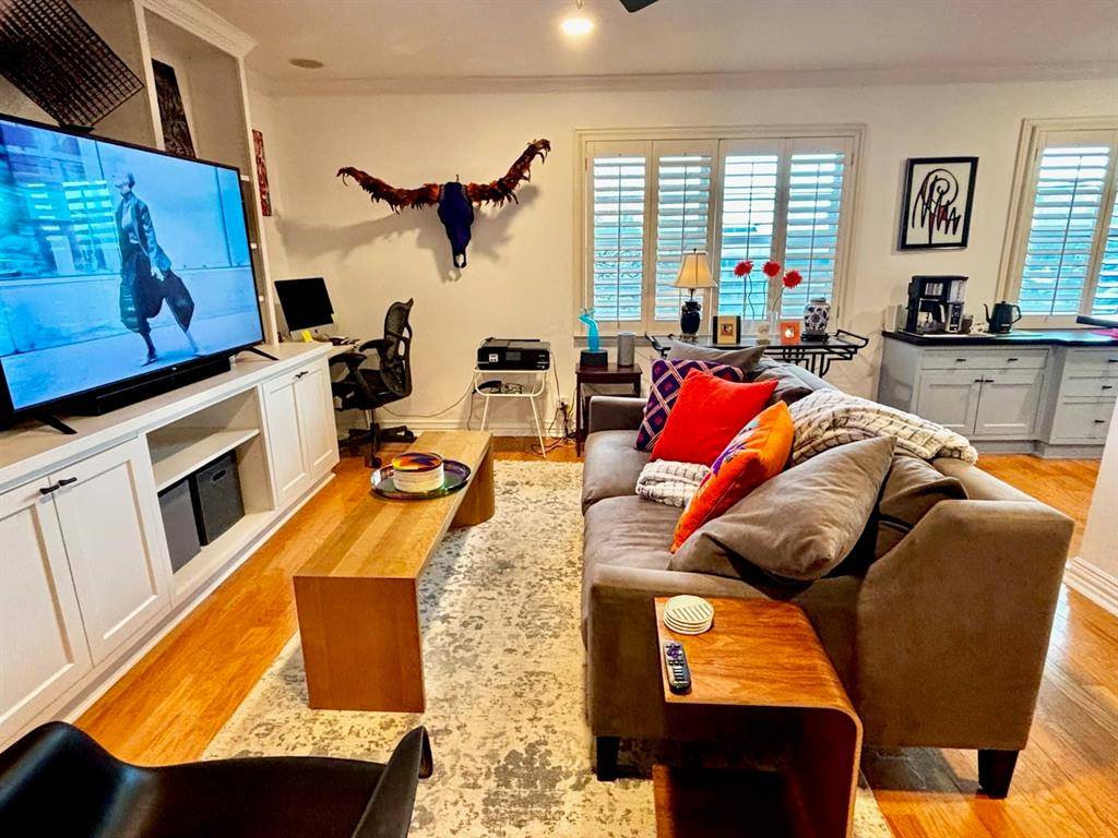 Stunningly Renovated Oversized 2nd Floor Condo Behind the Iconic Pink Wall. This beautifully updated condo offers the perfect blend of comfort and luxury with high-end finishes throughout. The home boasts newly updated kitchen and bathrooms, featuring plantation shutters, luxury fixtures, built-ins and thoughtful details in every corner. Enjoy the open concept with two living areas and a bright, airy eat-in kitchen, ideal for both relaxing and entertaining. Additional features include full-sized washer and dryer hookups. The HOA covers all utilities, ensuring a hassle-free living experience. Convenience is key with an assigned, covered, tandem two-car carport just steps from the back door. Prime Location: Within walking distance to Preston Center, an array of shops, dining options, and more, this condo offers both convenience and comfort in a highly sought-after area.