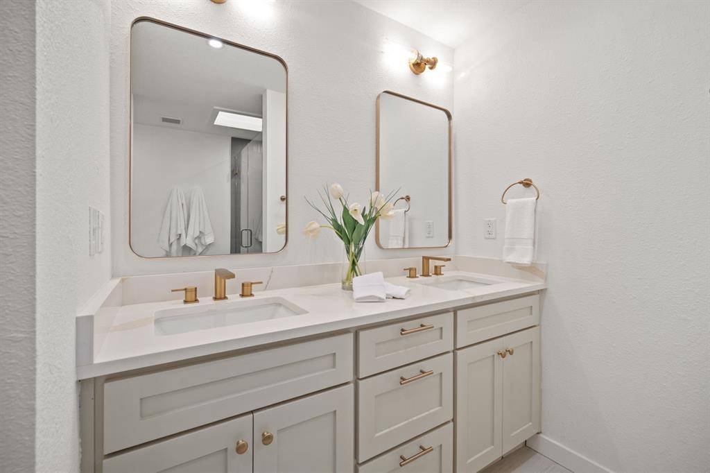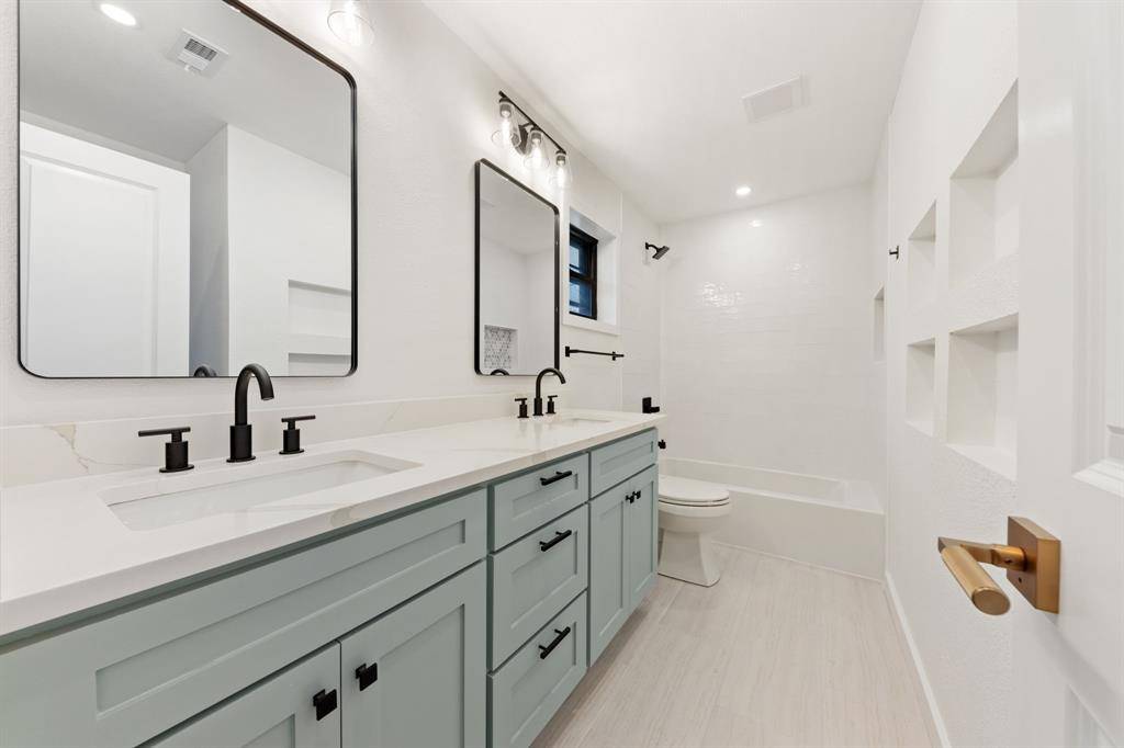 Nestled in one of Oak Cliff's hidden gems, Druid Hills, this thoughtfully and completely updated 4 bedroom 3 bathroom home blends timeless character with modern charm and today's functionality. A welcoming olive green front door, reflecting the charm and personality throughout. Inside, a warm and inviting presence from the moment you walk in, with 9-foot ceilings, luxury vinyl flooring throughout. Generously sized living areas create a relaxed, open atmosphere. Few homes manage to combine character, style, and functionality quite like this one. A home that has been fully renovated, from the kitchen, to each and every bedroom and bathroom. The front facing primary bedroom suite offers double vanities in the bathroom with a stunning stand up shower with Delta finishes featuring a rainfall shower, and pleasantly sized walk in for the closet lovers! The spacious kitchen features custom cabinetry, quartz countertops, gas stove, pot filler and stylish hardware. Three additional bedrooms provide flexible options for guests, family, or the perfect home office. Find a an additional bathroom with double vanities and tub shower in the rear of the home. Situated on a lovely .28-acre cul de sac lot, the exterior boasts a generous backyard ideal for entertaining, plus a long driveway leading to a freshly painted 2-car garage. Only 10 minutes or less from all the action — Downtown Dallas, Kiest Park and Tennis Courts, Bishop Arts District, TYPO District, Wynnewood Village Shops, Tyler Street Station, Kessler Theatre and more! This home truly delivers convenience, style, and comfort in one exceptional package.