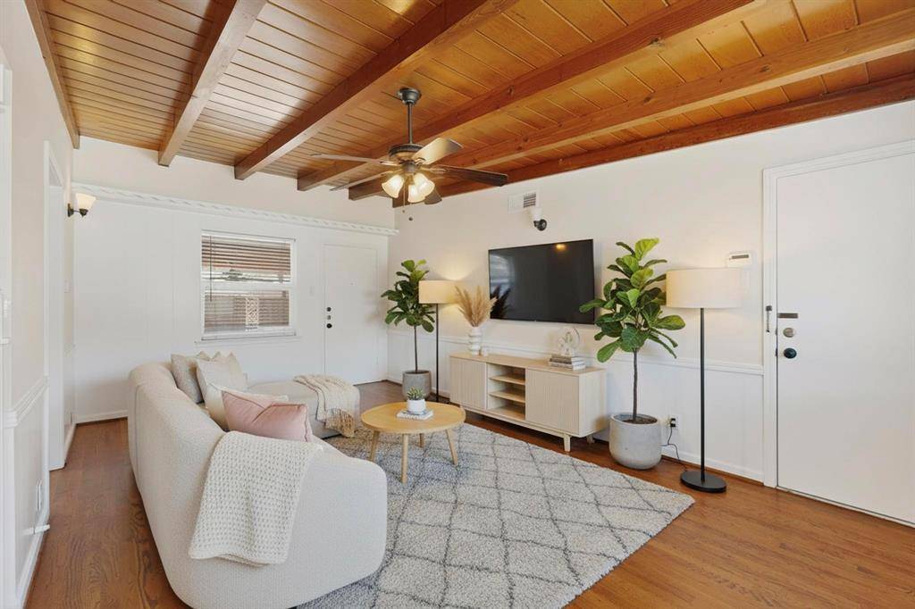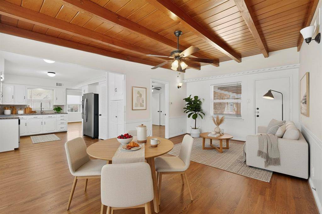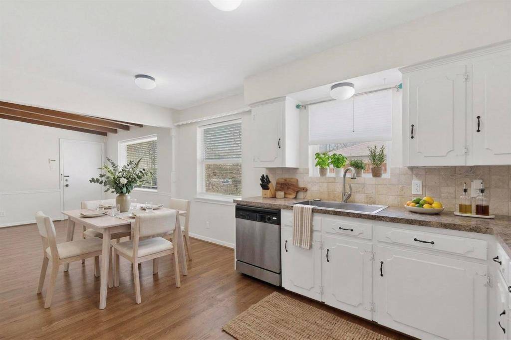 Charming ranch-style home tucked away on a cul-de-sac in an established East Dallas neighborhood, just an 8 minute drive to the Dallas Arboretum and White Rock Lake. Beautiful hardwood floors flow throughout the living areas and bedrooms, complemented by freshly painted interiors and well maintained finishes. The flexible floor plan offers two living areas and two dining spaces, including a formal dining area in the front living room and an eat-in kitchen dining area. The third bedroom also works well as a home office or study. Both bathrooms have been nicely updated with remodeled tile, fixtures, and finishes. The home has been wonderfully maintained over the years with numerous improvements including Marvin Infinity replacement windows (2023), stainless steel kitchen sink and stainless steel refrigerator (2023), plumbing cut-offs added throughout the home (2023), HVAC system (2012), and water heater (2018). The backyard backs to White Rock Creek and features a covered patio. An 8 foot wooden privacy fence was added along the driveway (2023), providing additional privacy to the outdoor space. Attached two car garage.