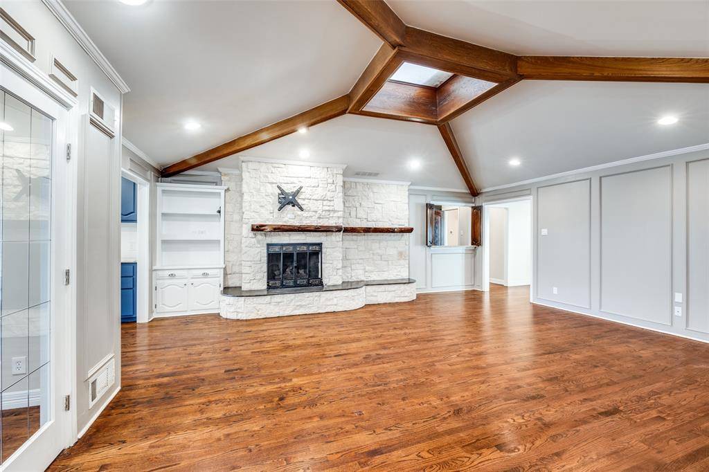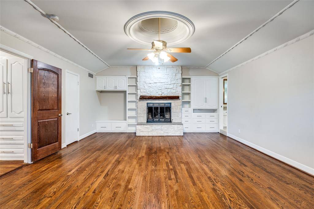 Beautifully maintained 3-bedroom home with a private office featuring custom built-ins, nestled on a quiet cul-de-sac in the highly desirable Lake Highlands area of Dallas within Richardson ISD. Situated on a spacious corner lot surrounded by mature trees, this home offers just over 2700 square feet of thoughtfully designed living space with multiple living areas ideal for both everyday living and entertaining. Step inside to discover luxury wood floors, soaring vaulted ceilings, abundant natural light, and architectural charm throughout the main living spaces. Huge master bedroom with fireplace featuring oversized master bath with soaking tub and heated floors. An expansive living room serves as the heart of the home, featuring a skylight and stylish wet bar that creates the perfect setting for gatherings with family and friends. The kitchen is designed for both function and flow with granite countertops, double ovens, generous cabinetry, and convenient access to dining and living areas. The dedicated private office with built-in shelving and cabinetry offers an ideal work-from-home environment or a flexible living space that can serve as a sitting area, playroom, or additional living area. Three spacious bedrooms provide comfort and flexibility for family and guests, while the primary suite offers a relaxing retreat filled with natural light. Outside, the large corner lot and peaceful cul-de-sac location provide privacy and excellent curb appeal with mature landscaping and room to enjoy outdoor living. Conveniently located near US-75, I-635, White Rock Lake, NorthPark Center, shopping, dining, parks, and DART rail, this home offers easy access to everything Dallas has to offer while maintaining the charm of an established neighborhood. Zoned to Skyview Elementary, Forest Meadow Junior High, and Lake Highlands High School, this property offers space, location, and lifestyle in one of Northeast Dallas' most desirable communities. Property is Virtually Staged